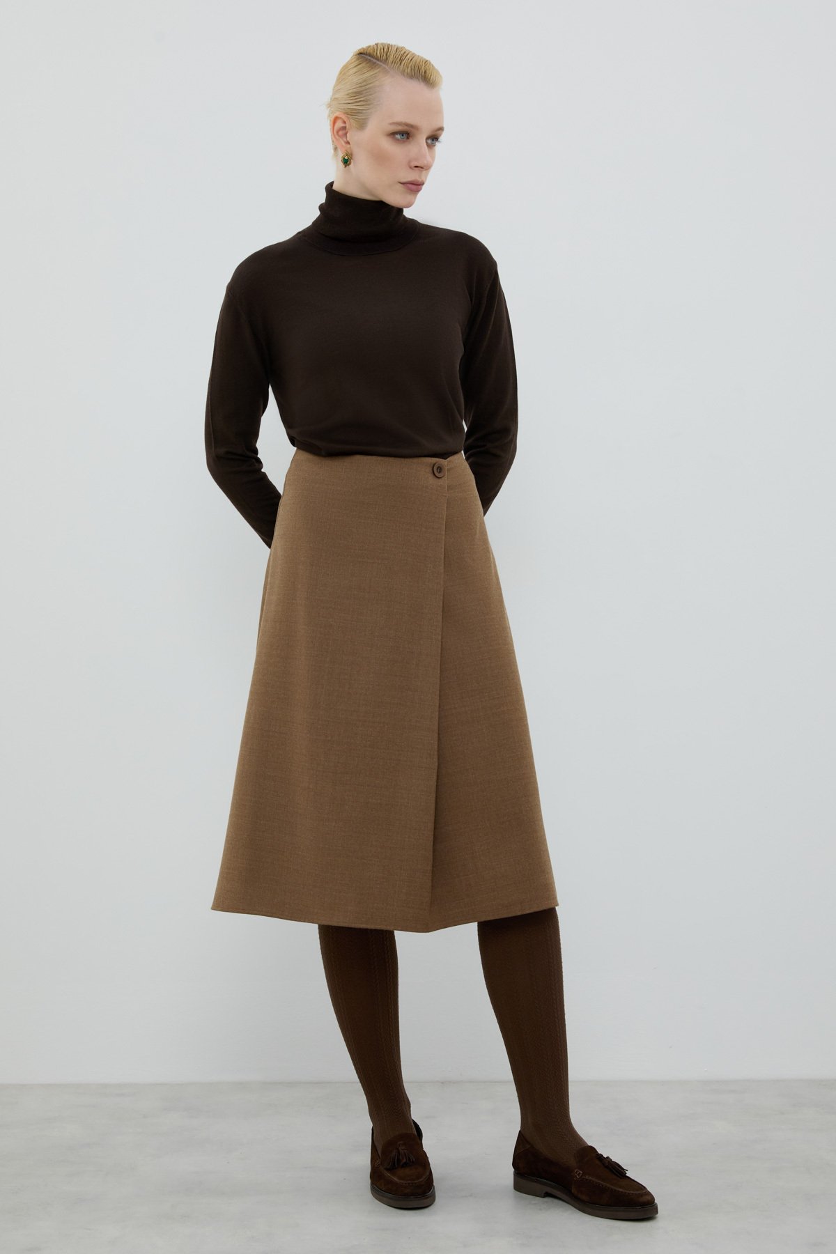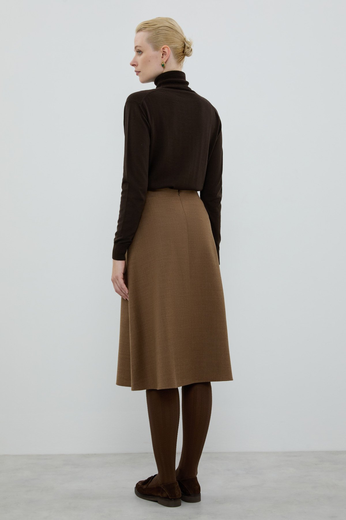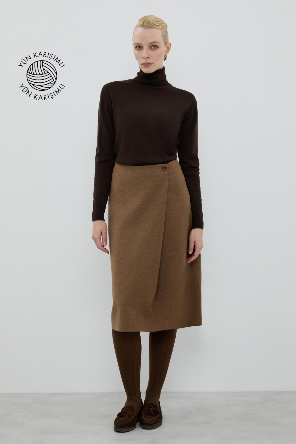 Yün Karışımlı Pili Detaylı Midi Boy Etek Kahve - 2