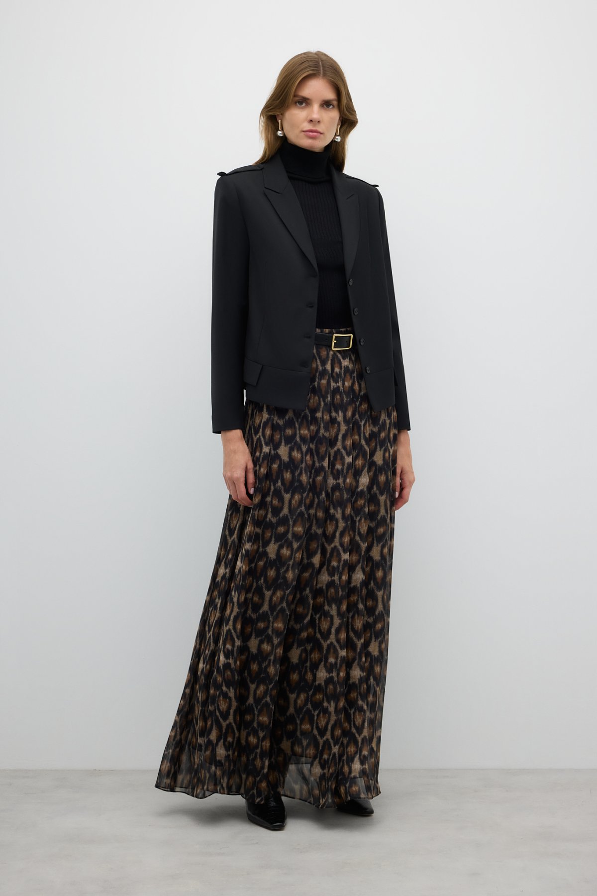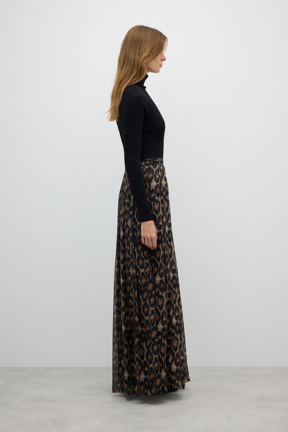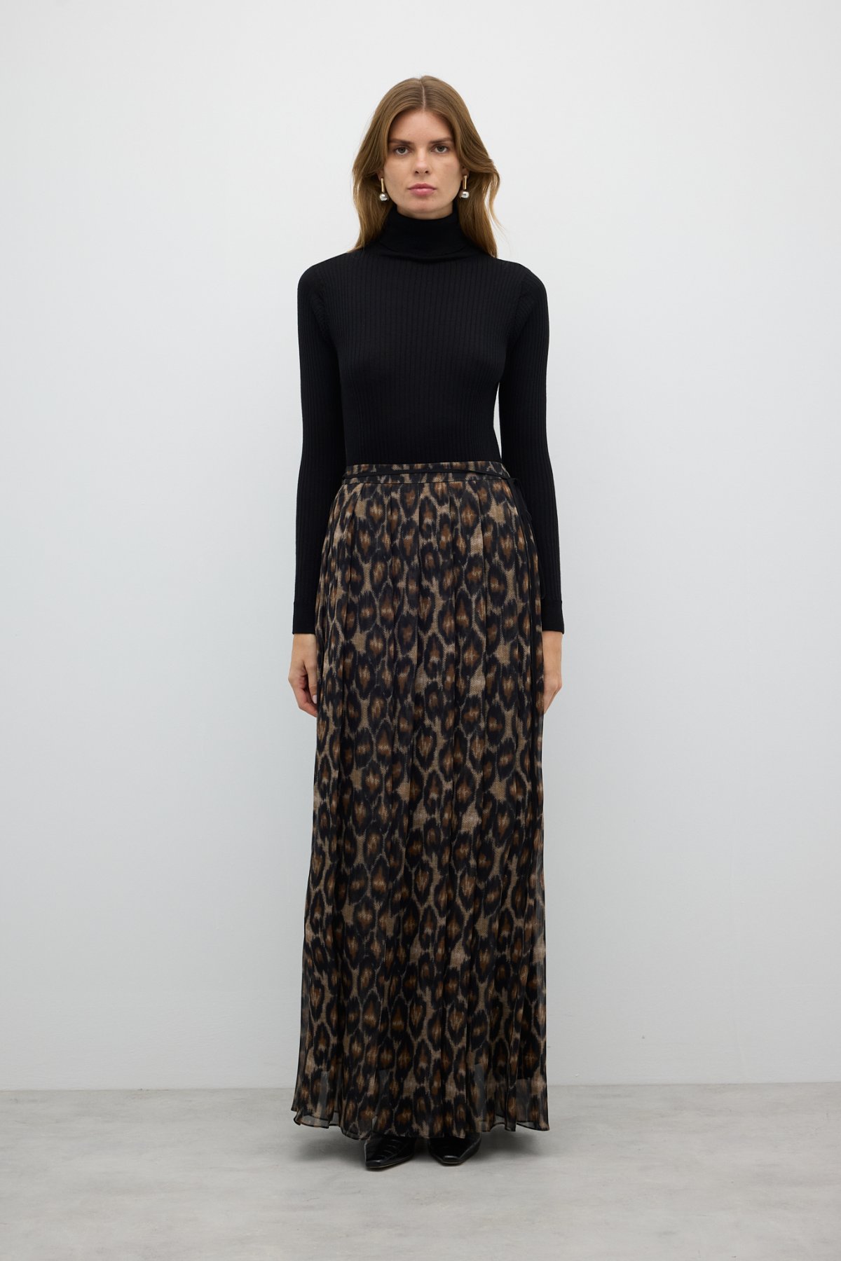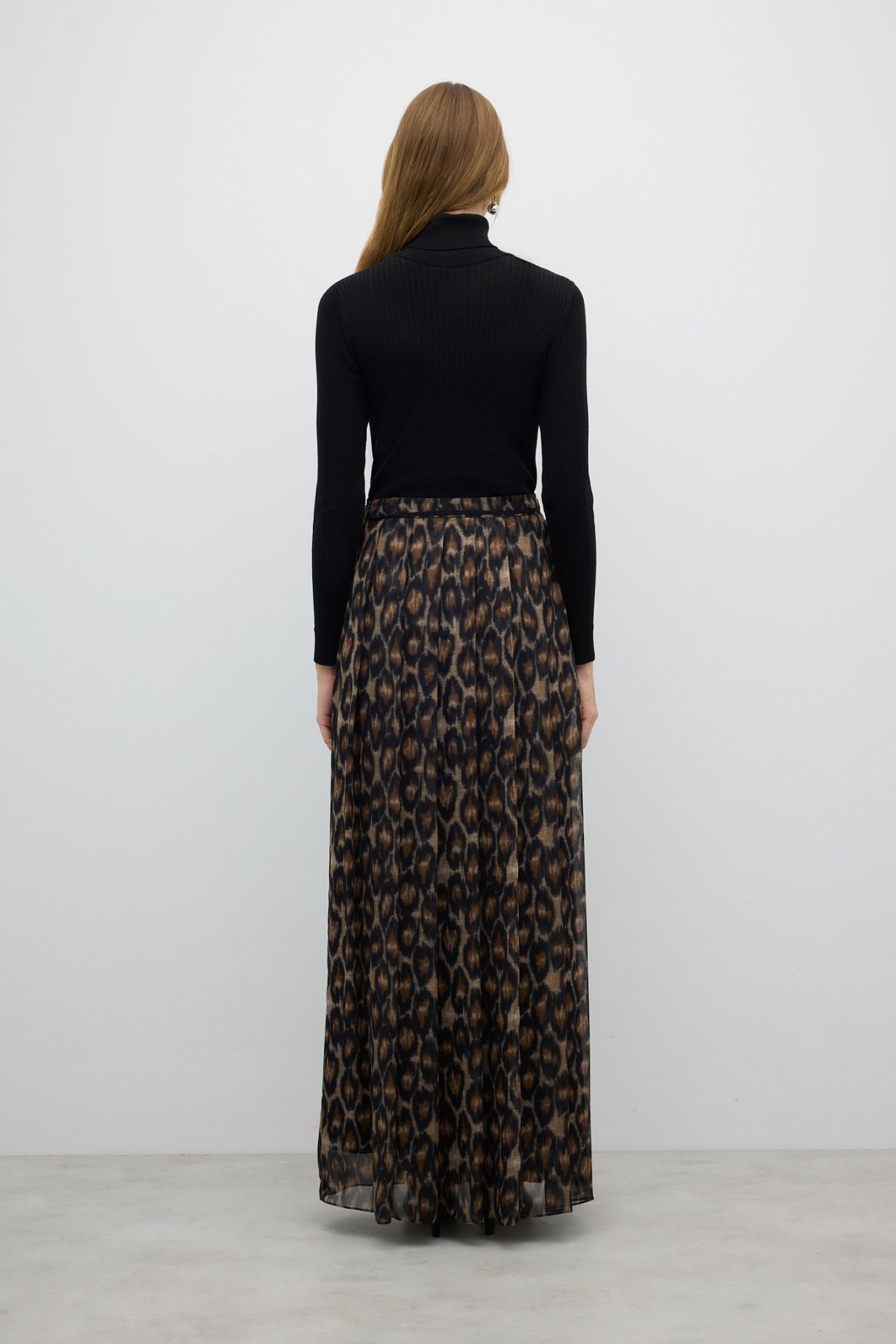 Leopar Desenli Pileli Uzun Etek Standart Renk