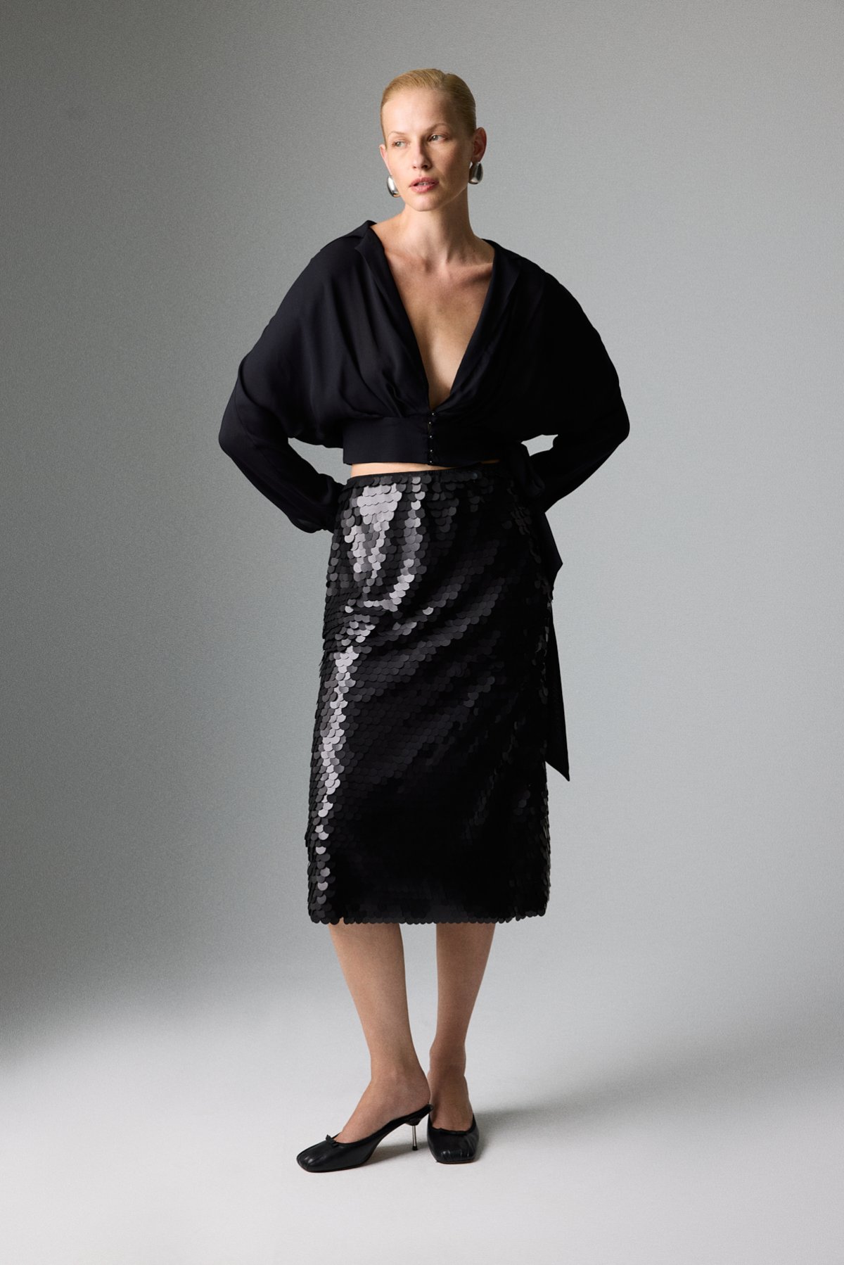 Payetli Midi Boy Etek Siyah - 2