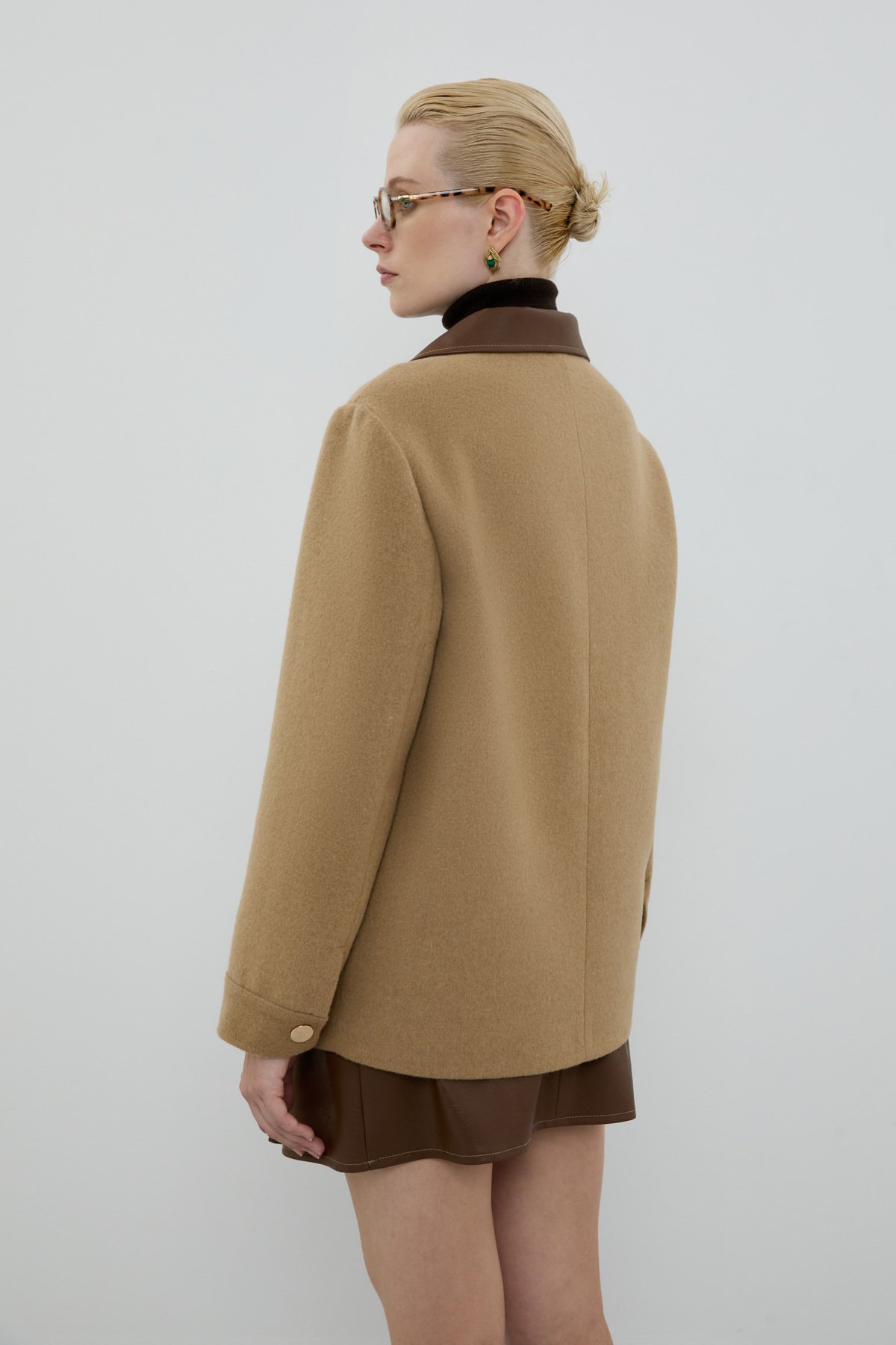 Yün Karışımlı Deri Detaylı Ceket Camel - 3