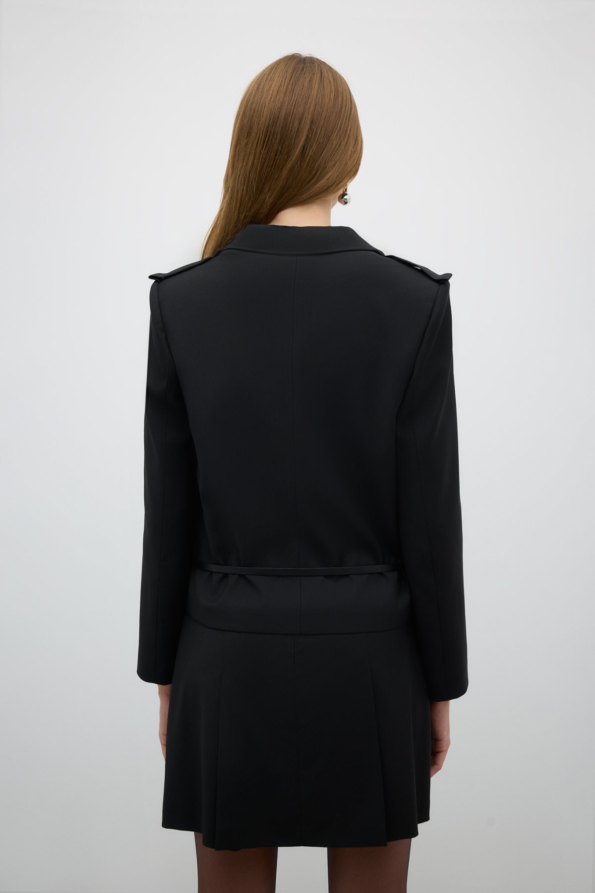 Erkek Yaka Çıkarılabilir Kemerli Ceket Siyah