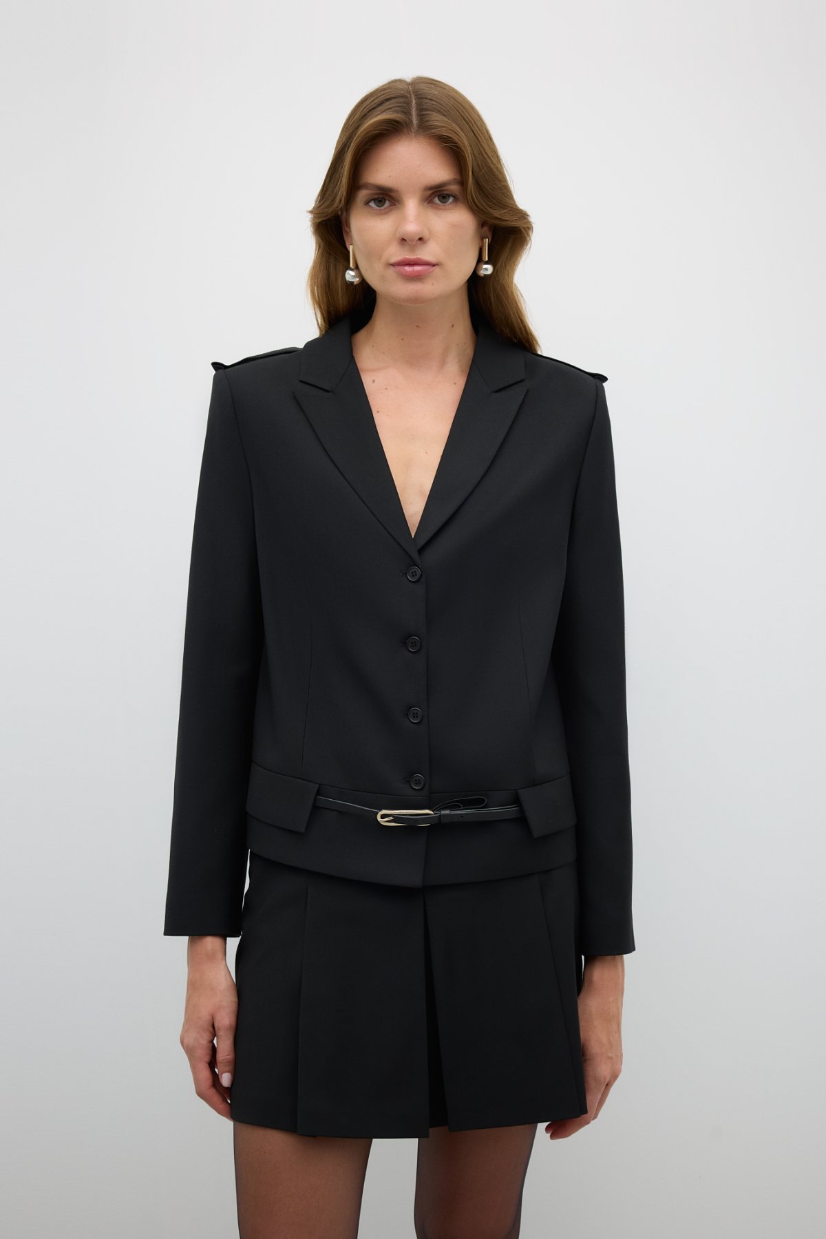 Gold Metal Aksesuarlı Önü Fermuarlı Ceket Siyah