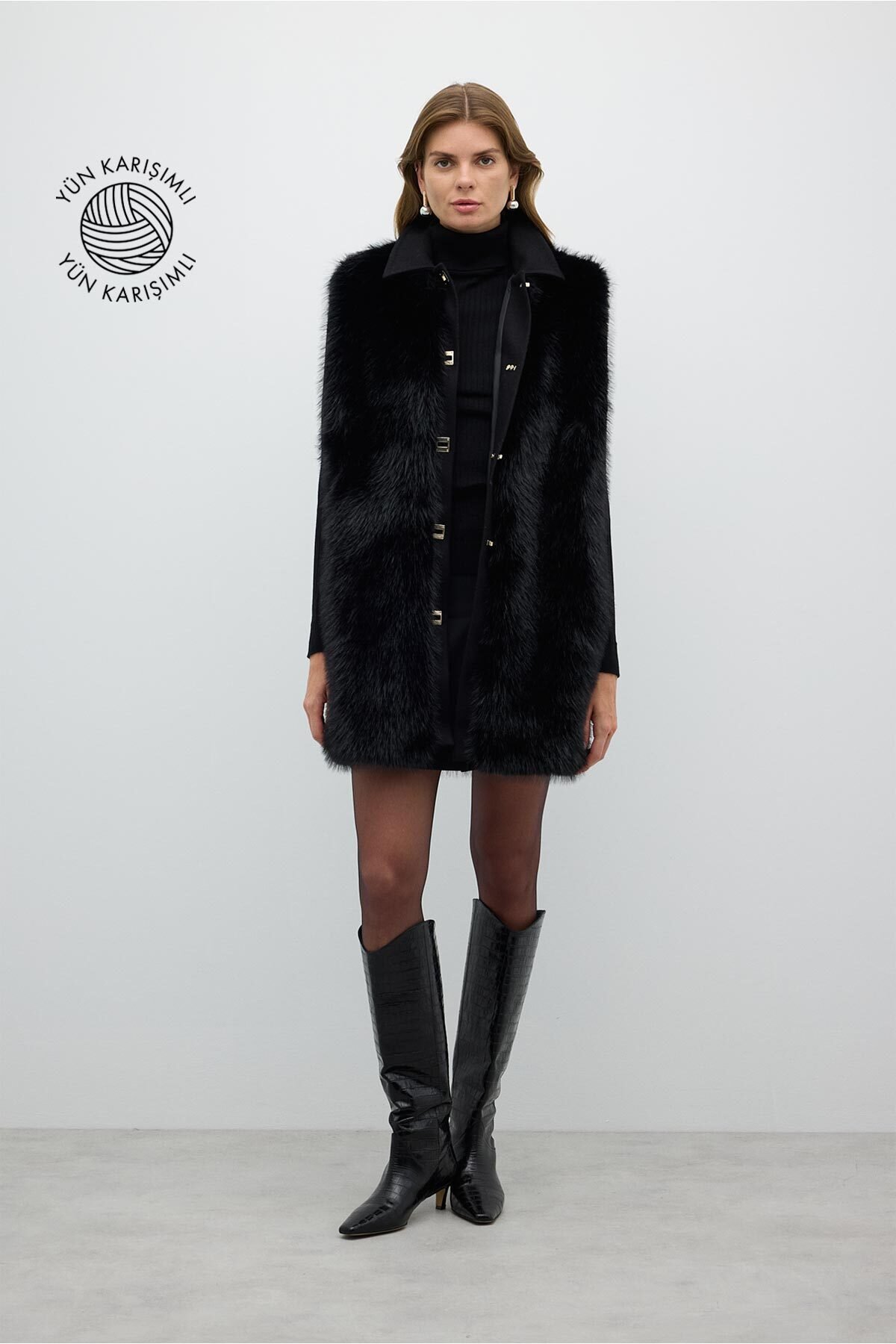 Kilit Tokalı Kürk Yelek Siyah - 1