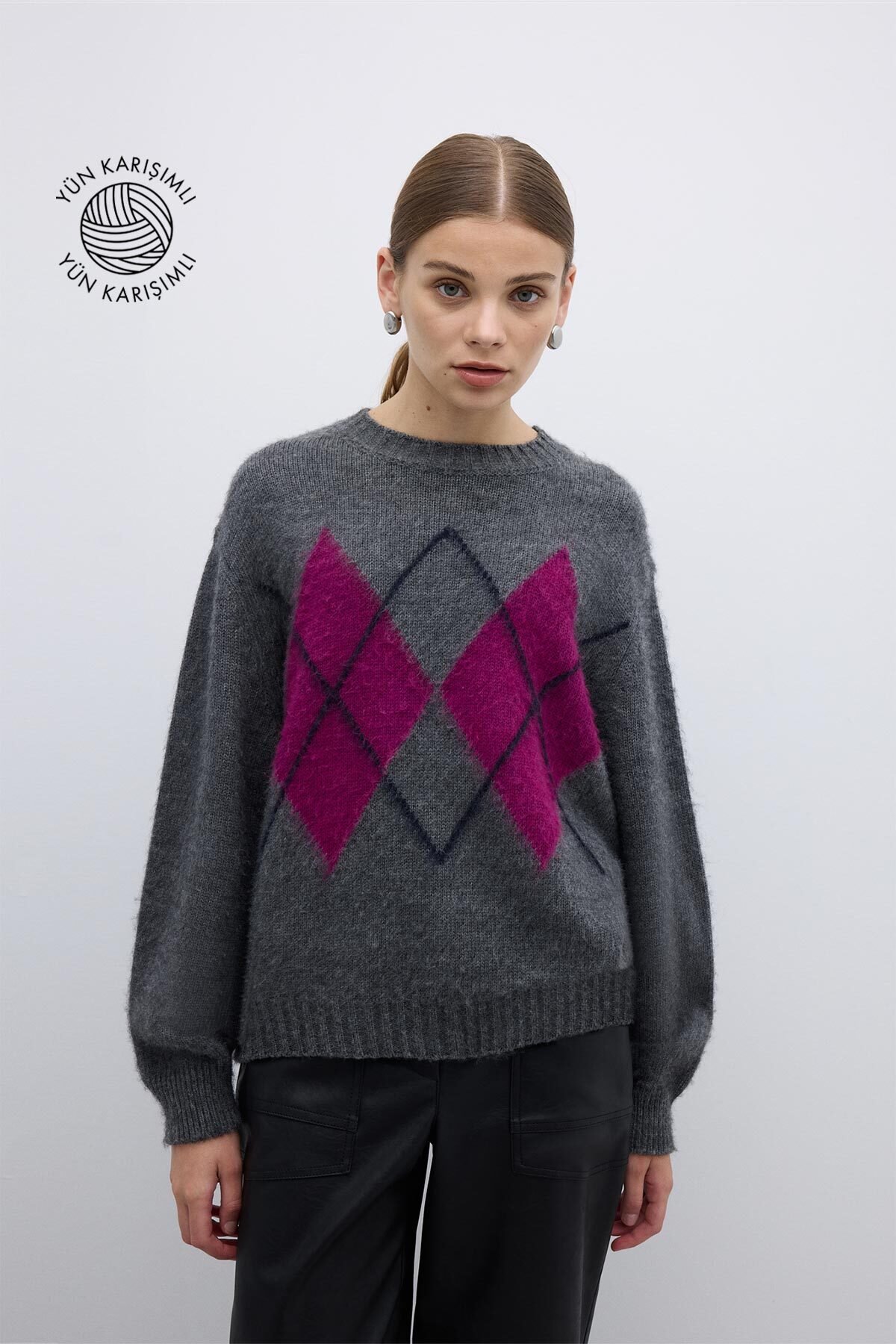 Yün Karışımlı Triko Kazak Standart Renk - 1