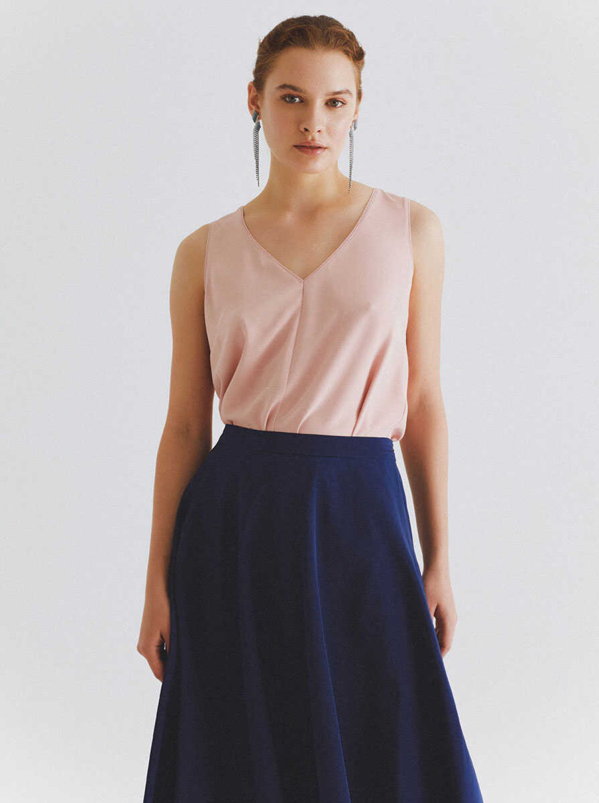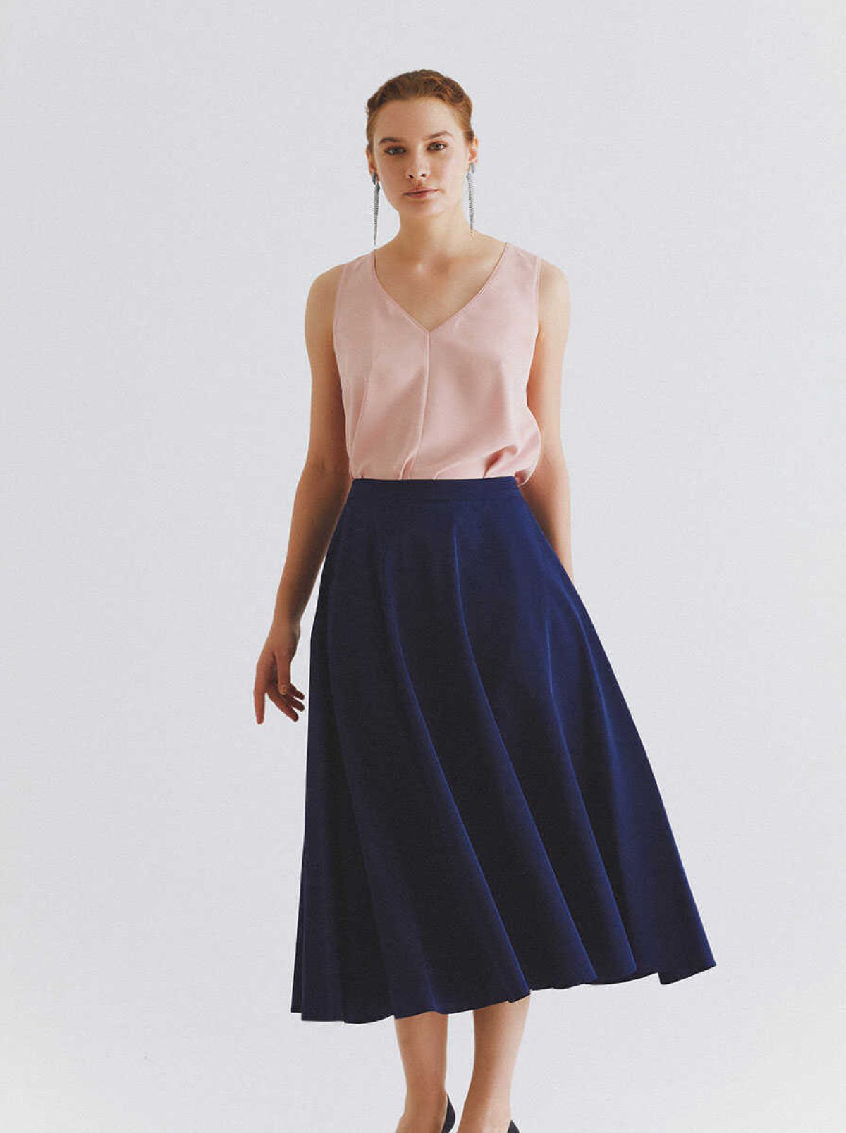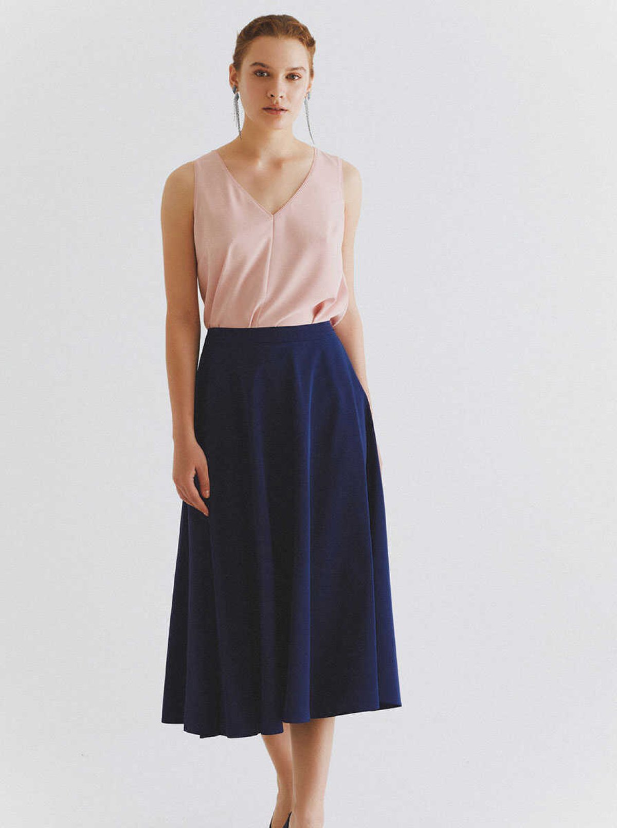 Tek Yanı Yırtmaçlı Midi Boy Etek Lacivert