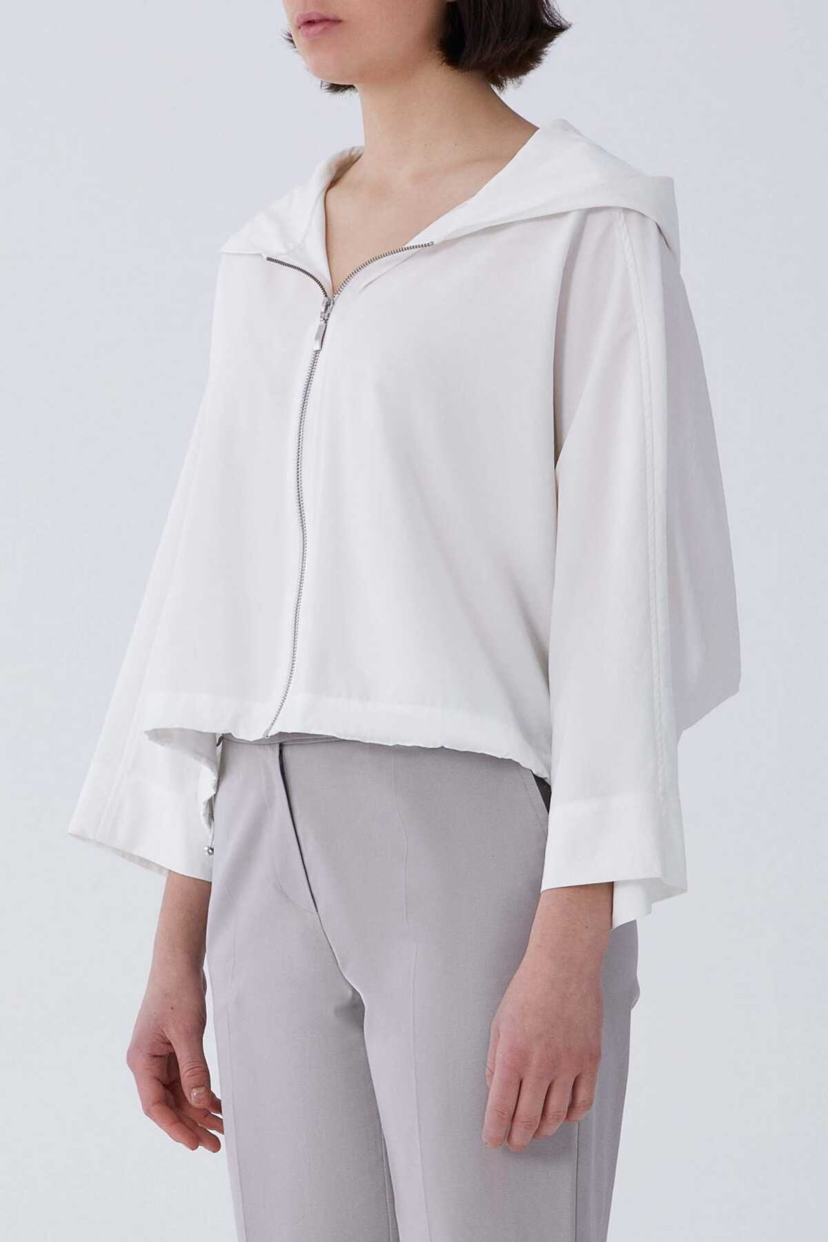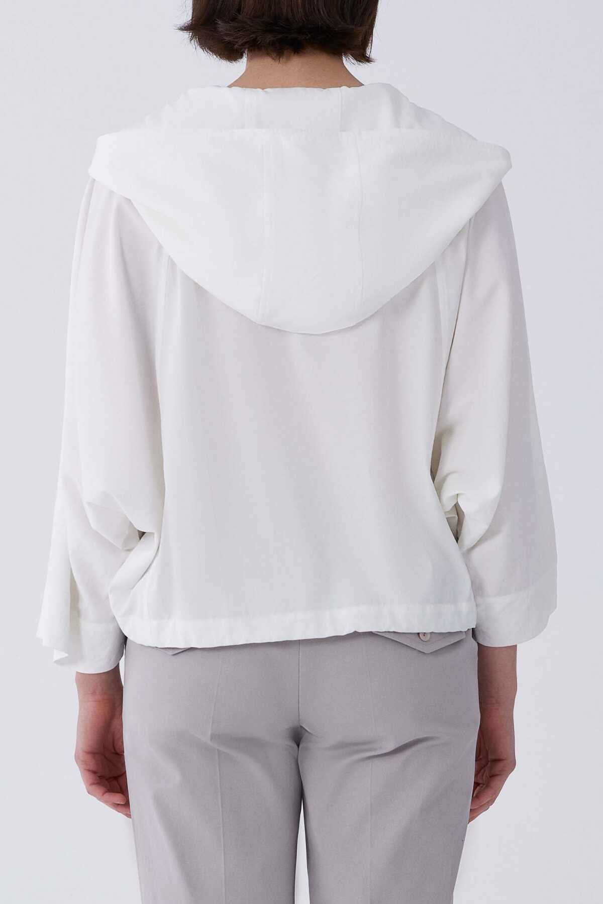 Kapüşonlu Beli Lastikli Kısa Mont Beyaz