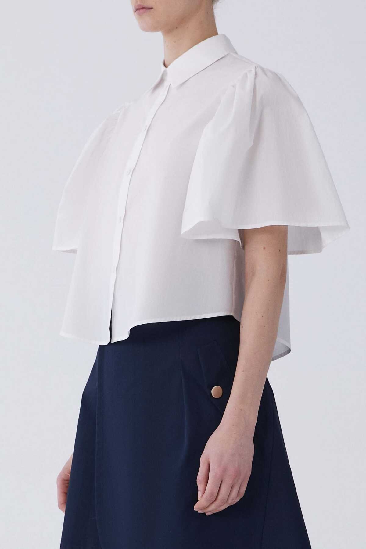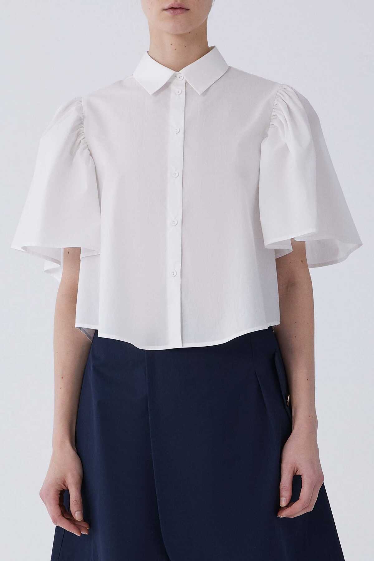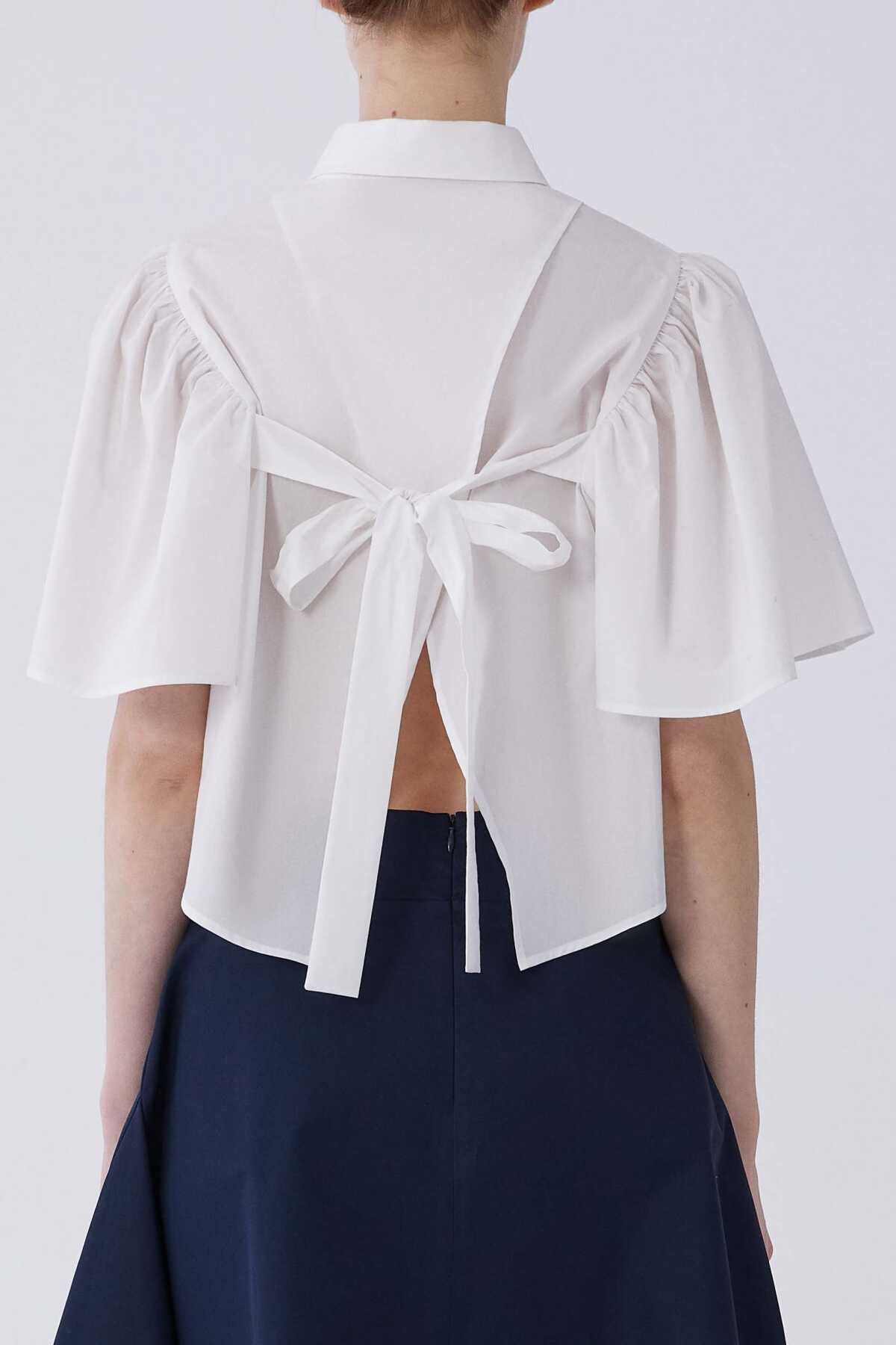 Pili Detaylı Beli Kemerli Gömlek Beyaz