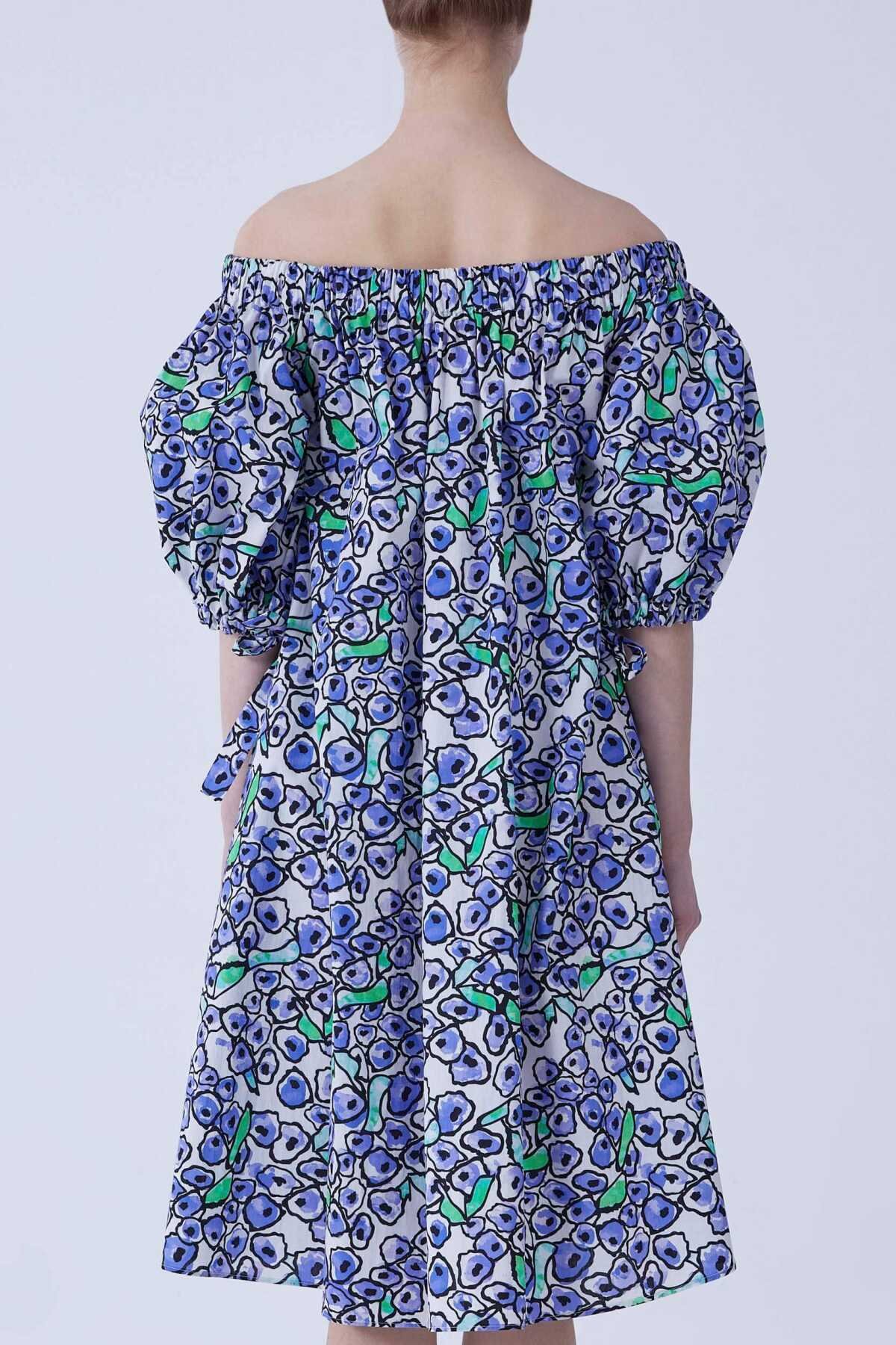 Kayık Yaka Karpuz Kol Floral Desen Elbise Standart Renk
