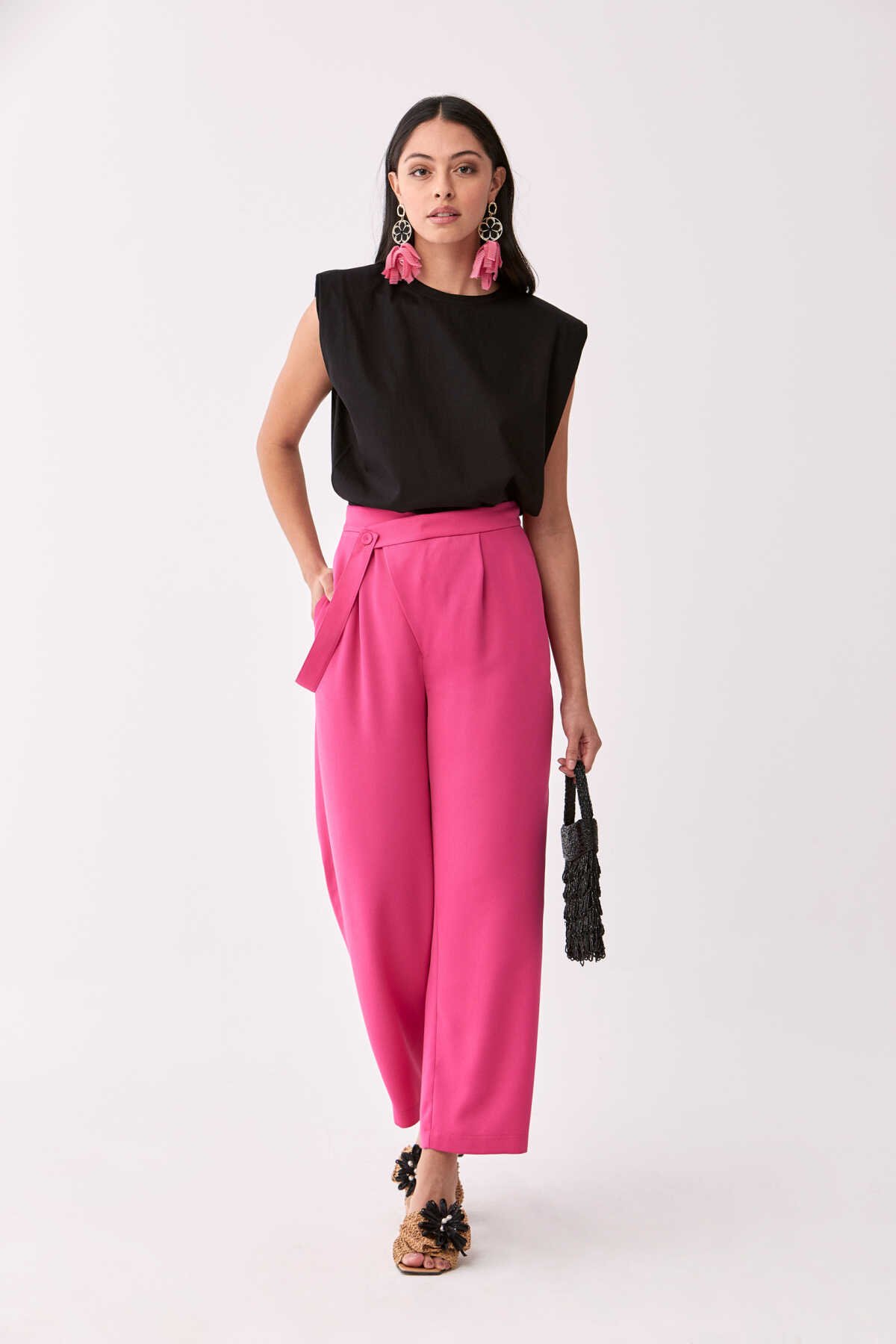 Kemer Detaylı Pantolon Fuşya
