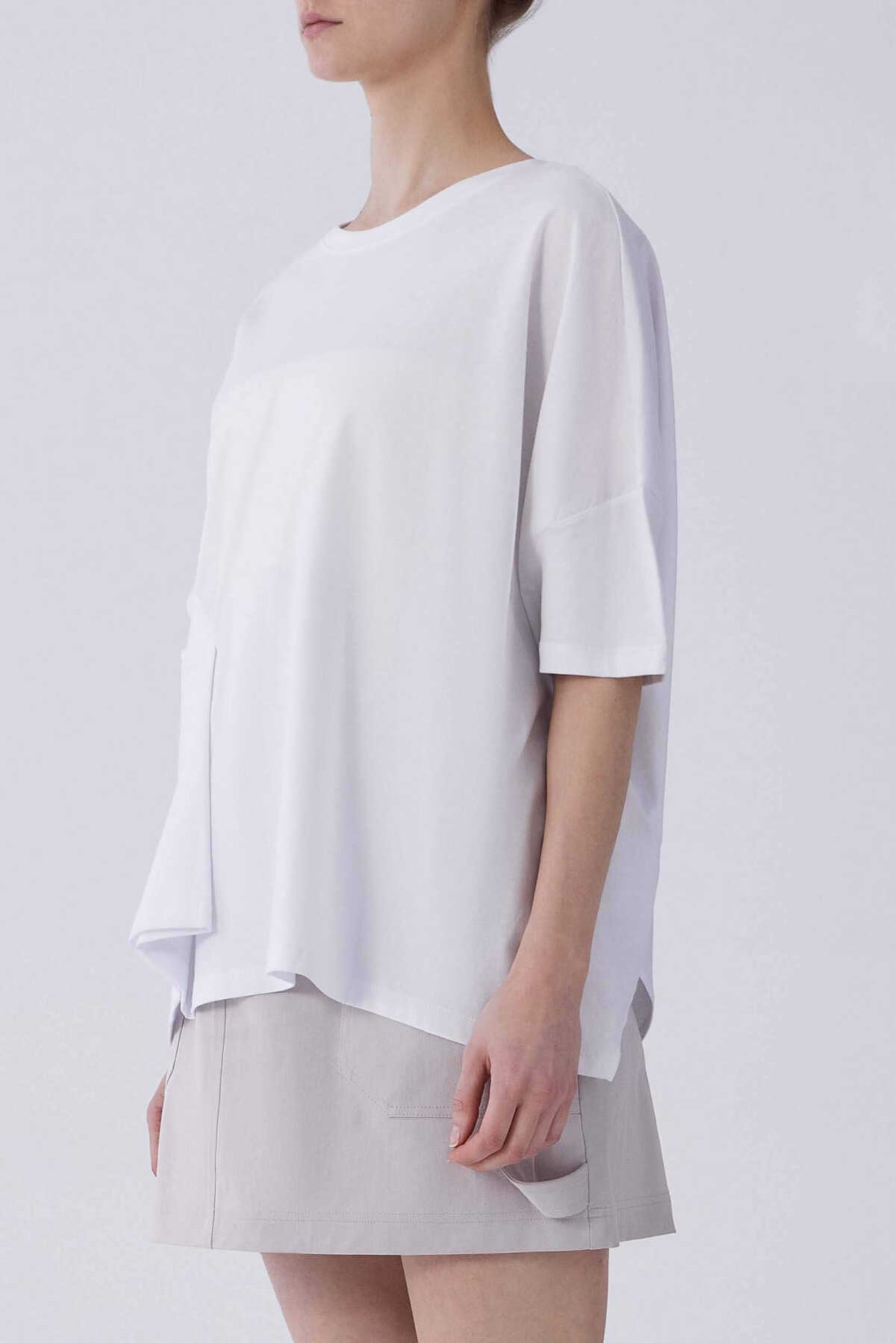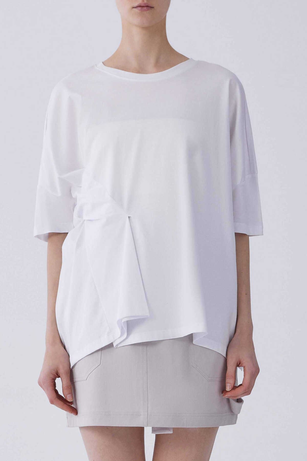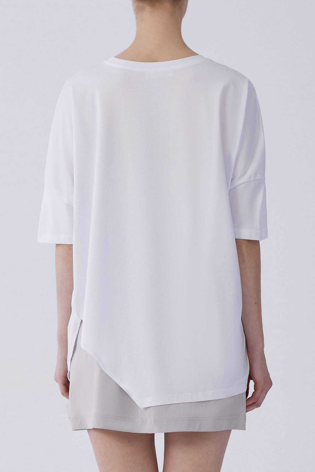 Kısa Kol Ön Detaylı Tişört Optik Beyaz