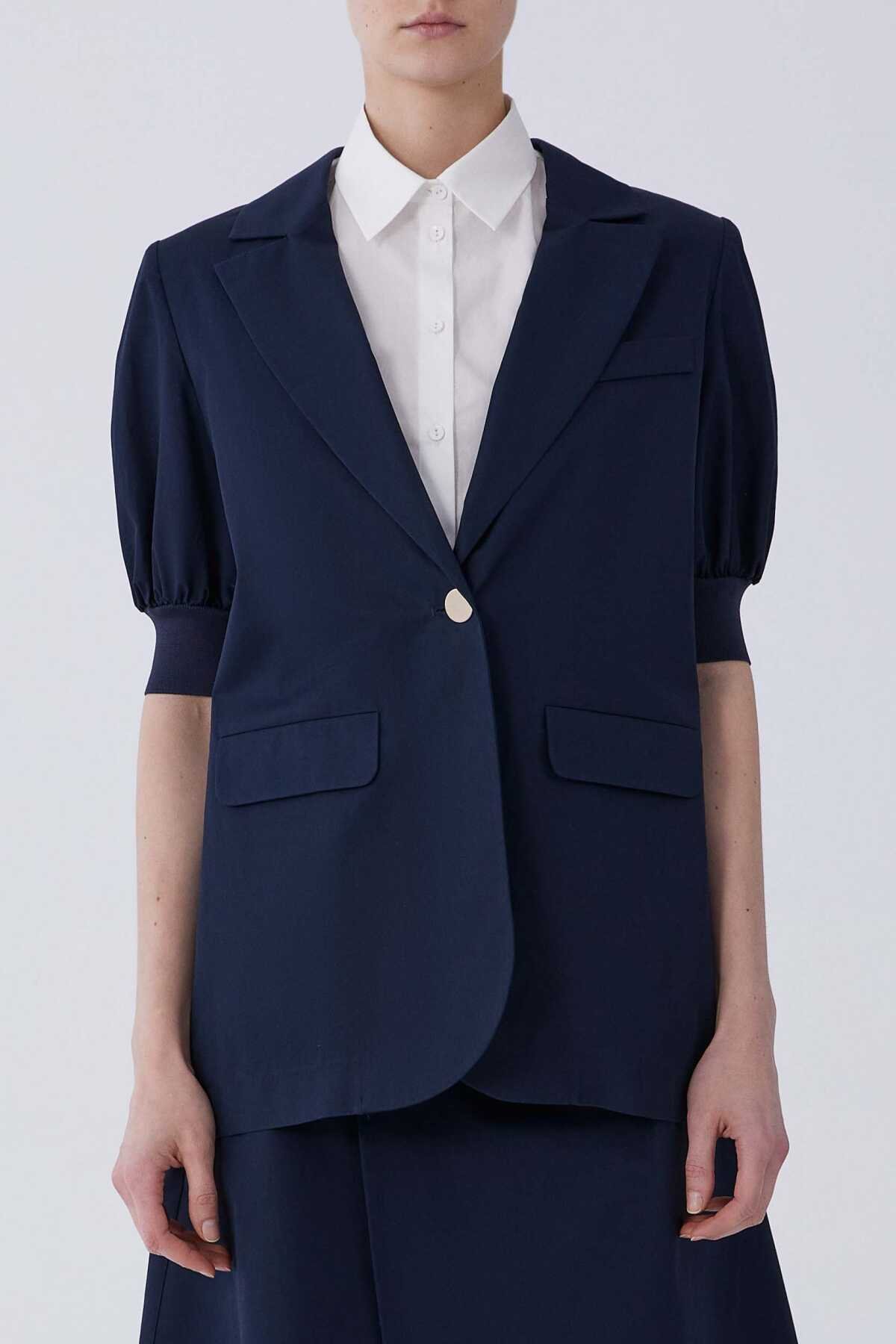 Kısa Kol Tek Düğme Ceket Lacivert
