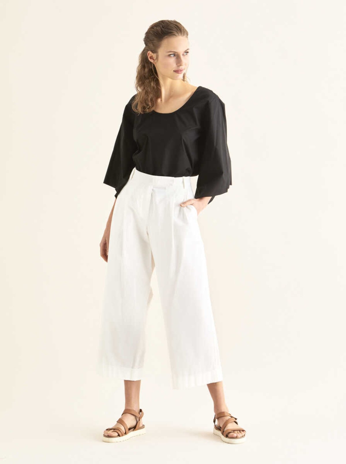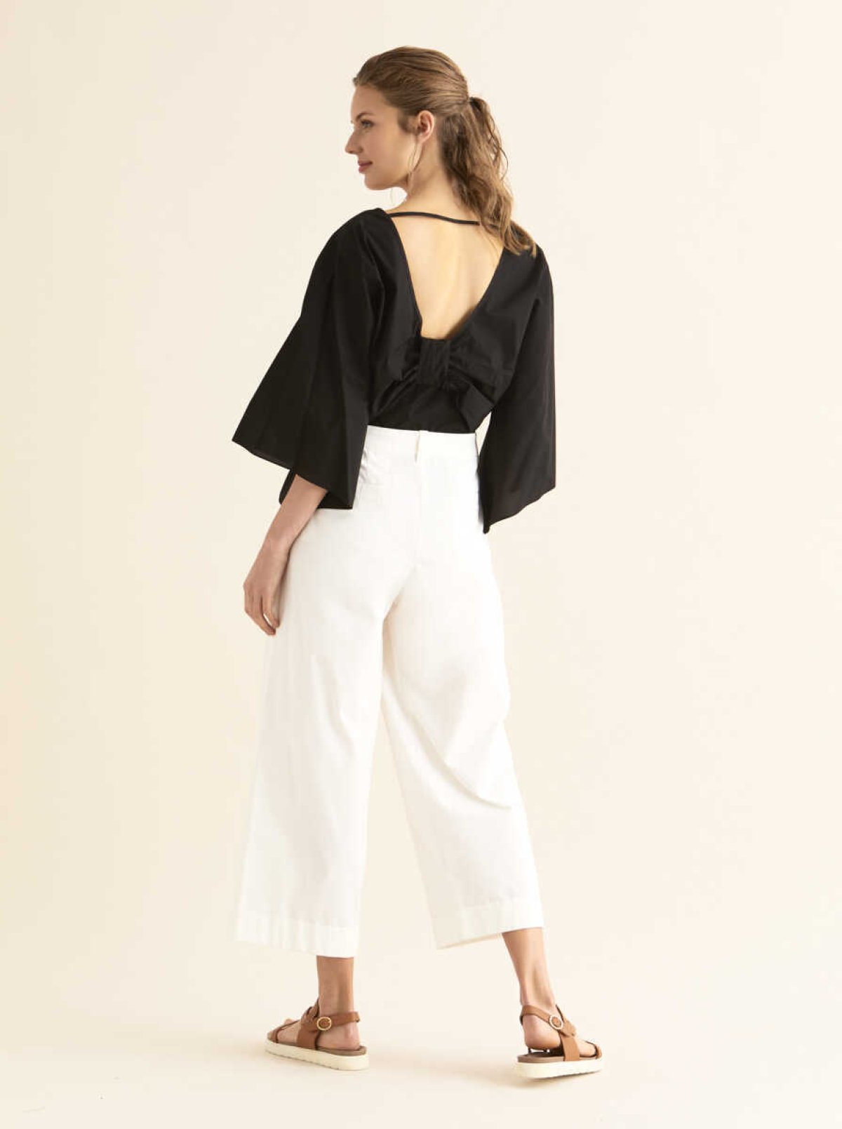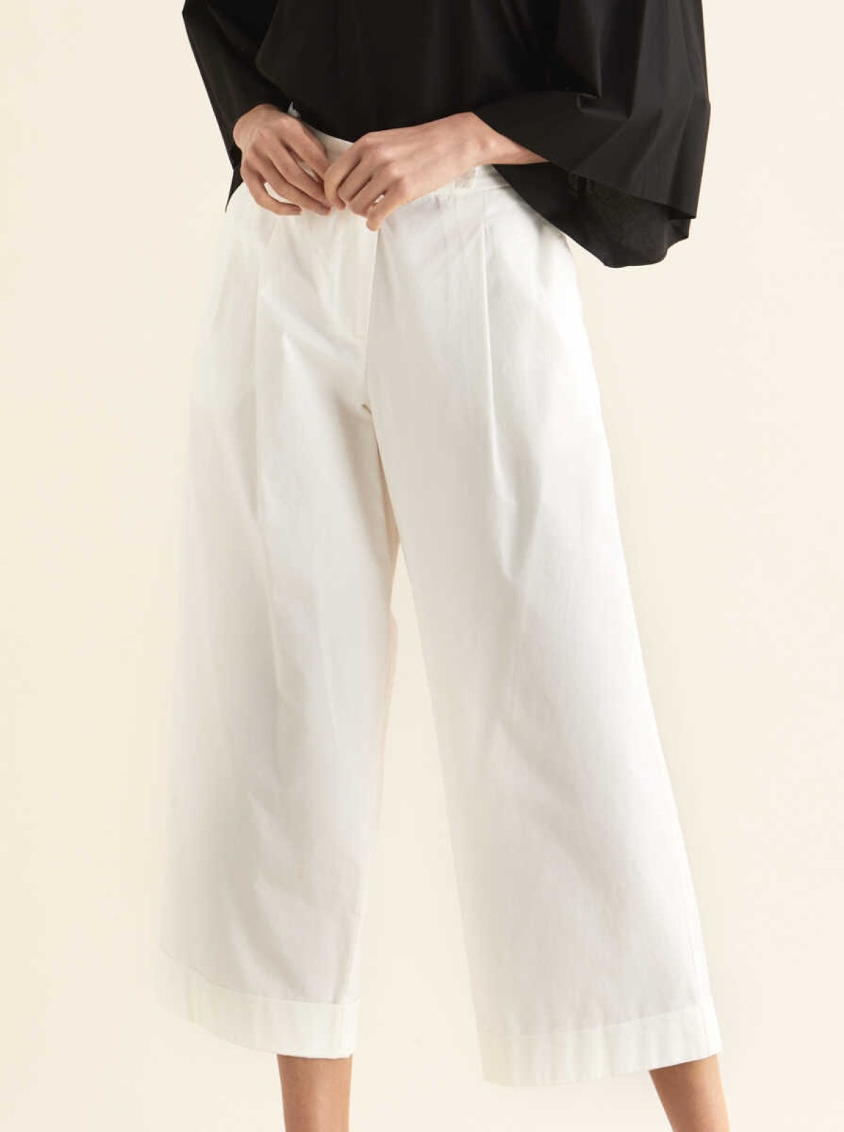 Kısa Ve Geniş Paça Pantolon Krem