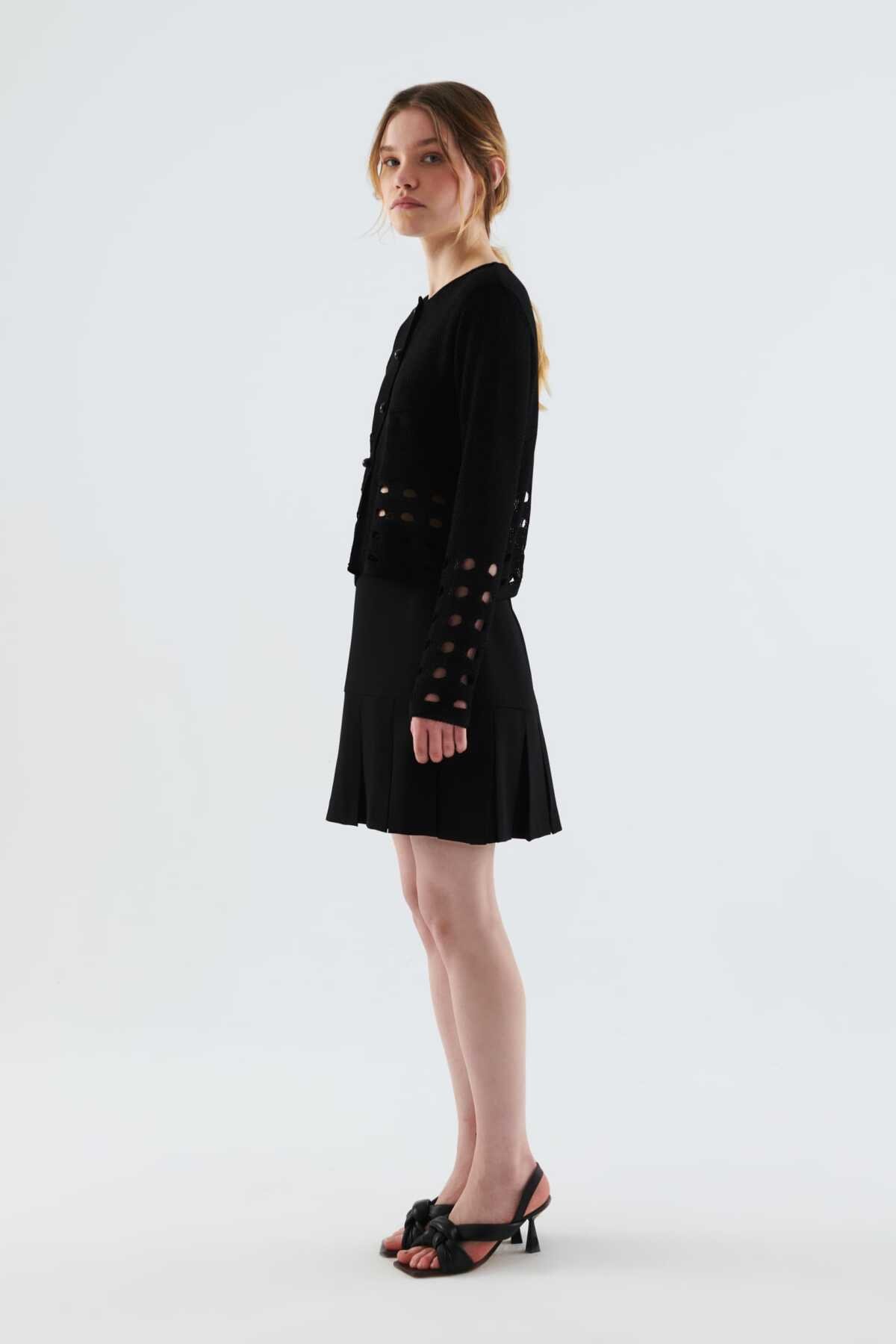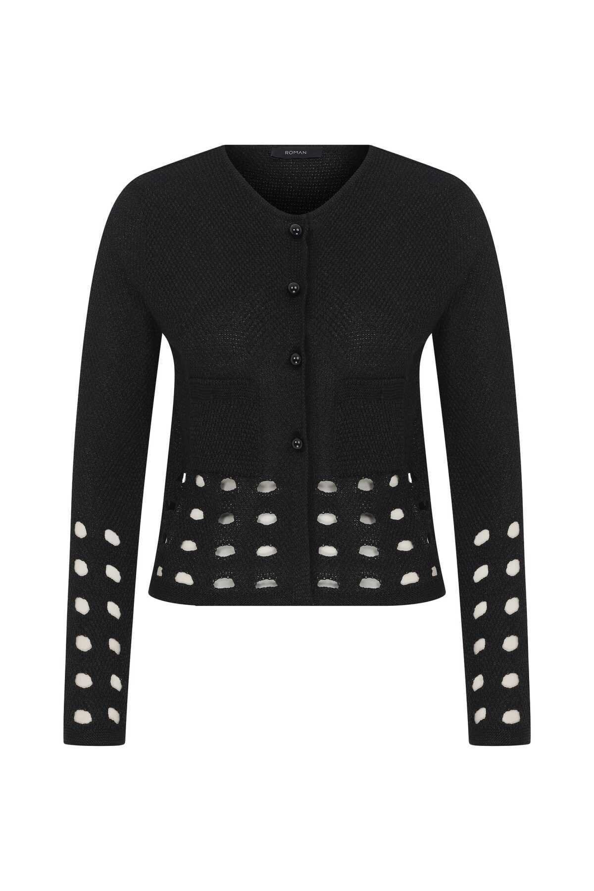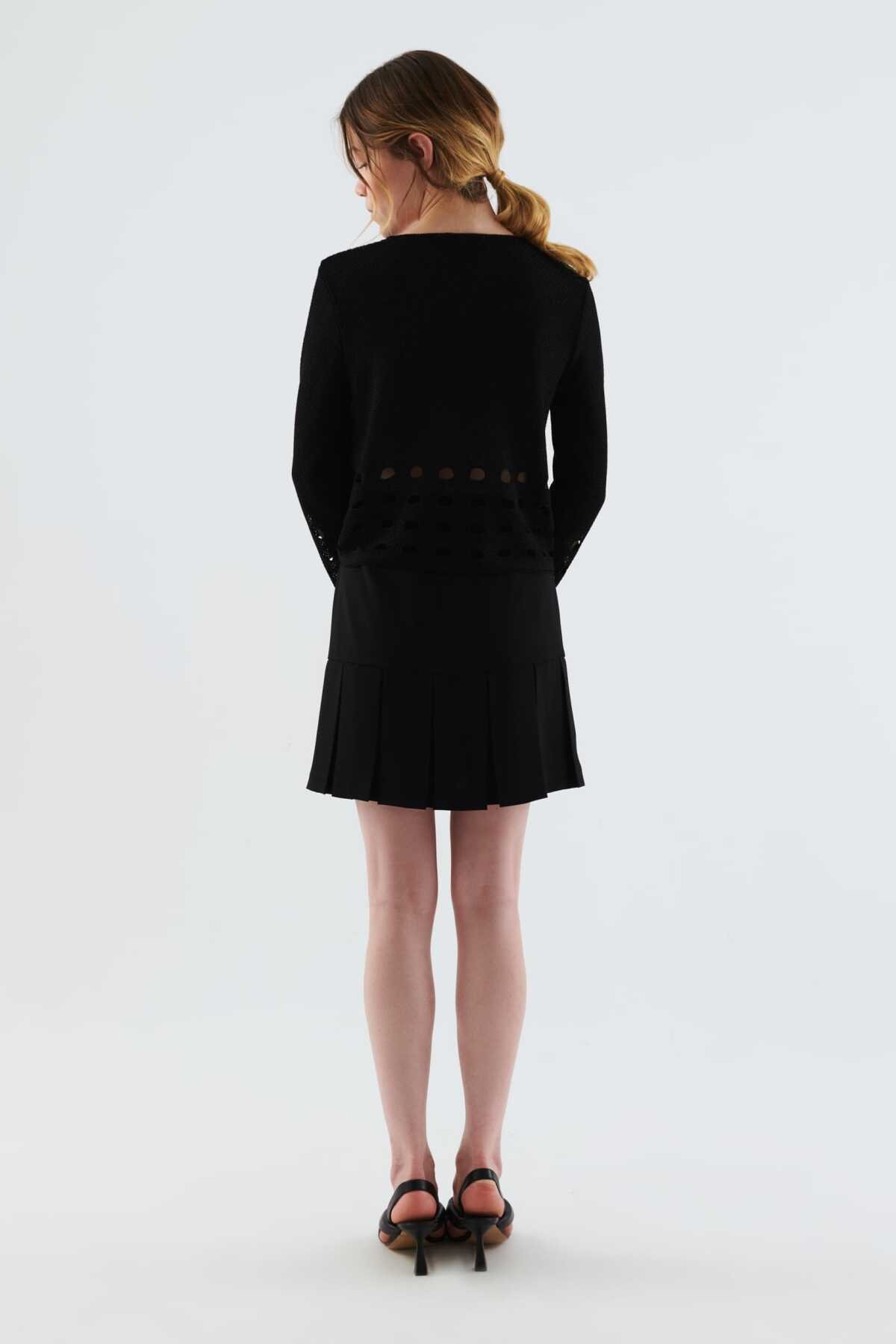 Kol Ve Bel Detaylı Kadın Triko Siyah