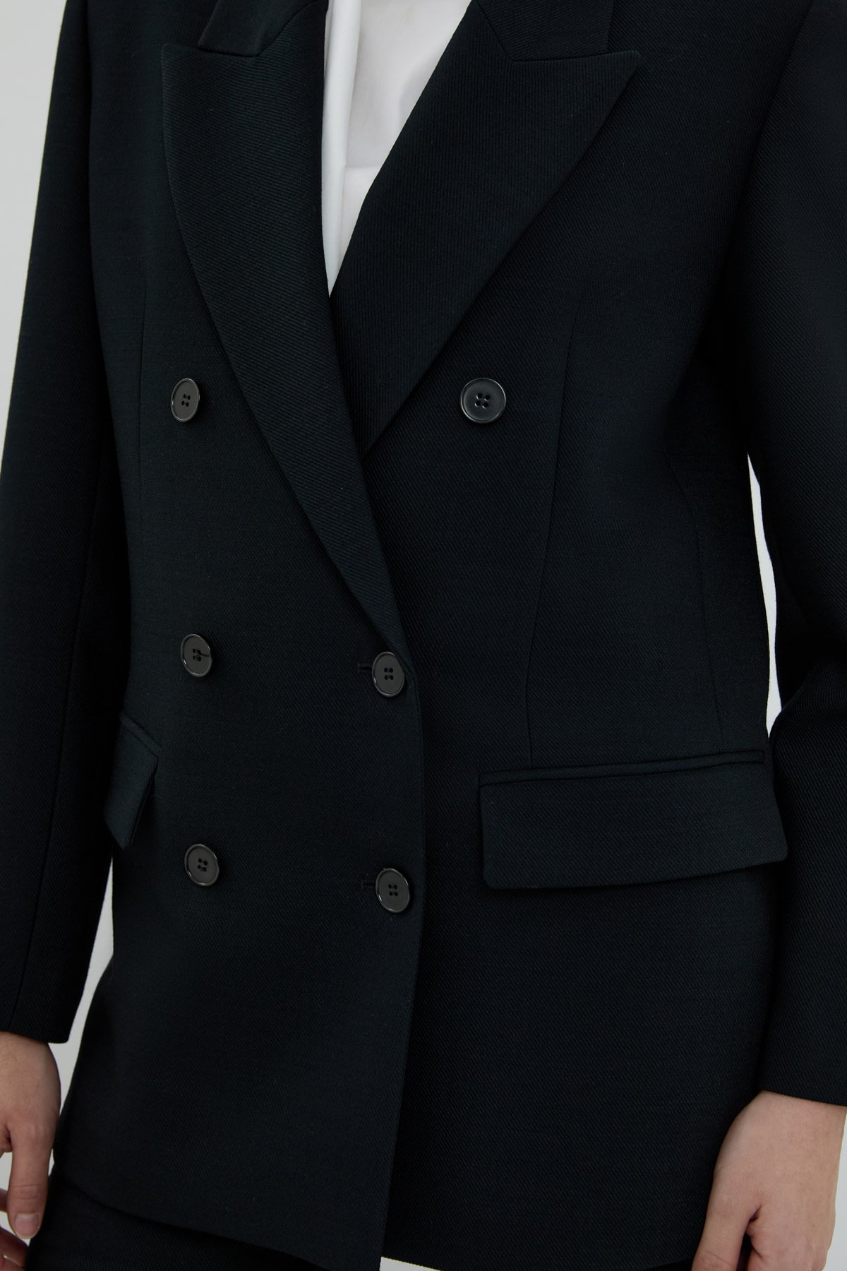 Çift Cepli Yün Karışımlı Ceket Kahve