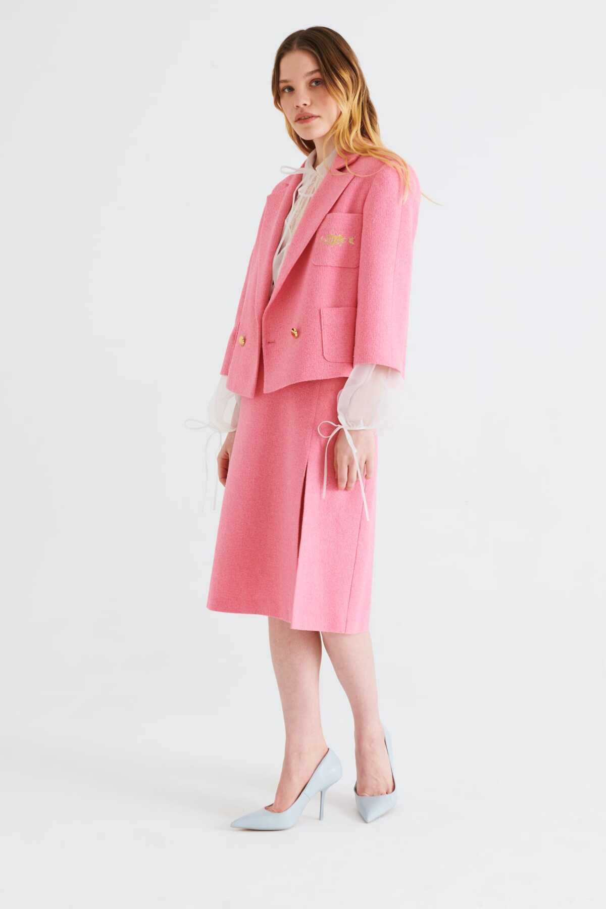 KUMAŞ İÇERİĞİ: Ana Kumaş: %57 Pamuk ,Ana Kumaş: %25 Polyester ,Ana Kumaş: %18 Polyamid ,Astar 1: %100 Asetat , YIKAMA TALİMATI: Yıkama Yapılmaz ÜTÜLEME TALİMATI: Orta Isıda Ütüleme 150C KURUTMA TALİMATI: Tamburlu Kurutma Yapılmaz ALT ÜRÜN GRUBU: Kısa MODEL ÖLÇÜLERİ: