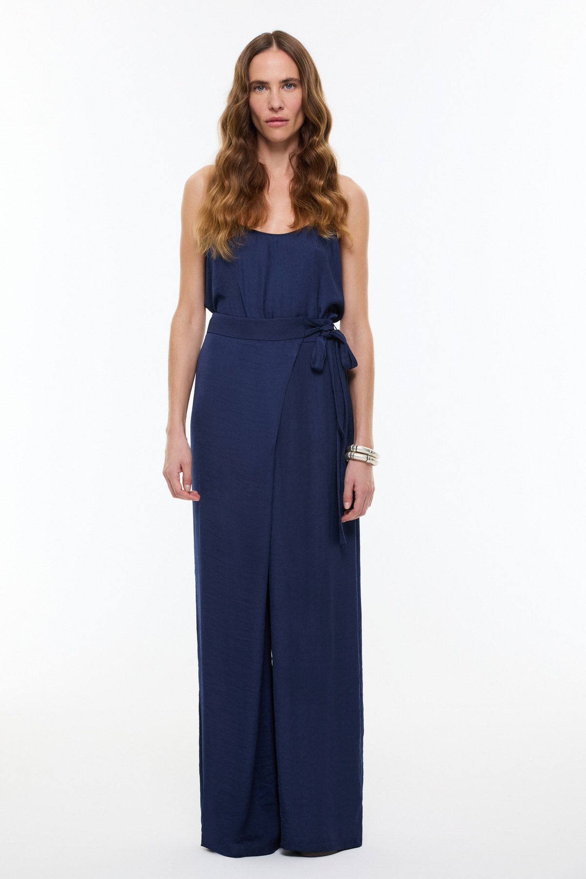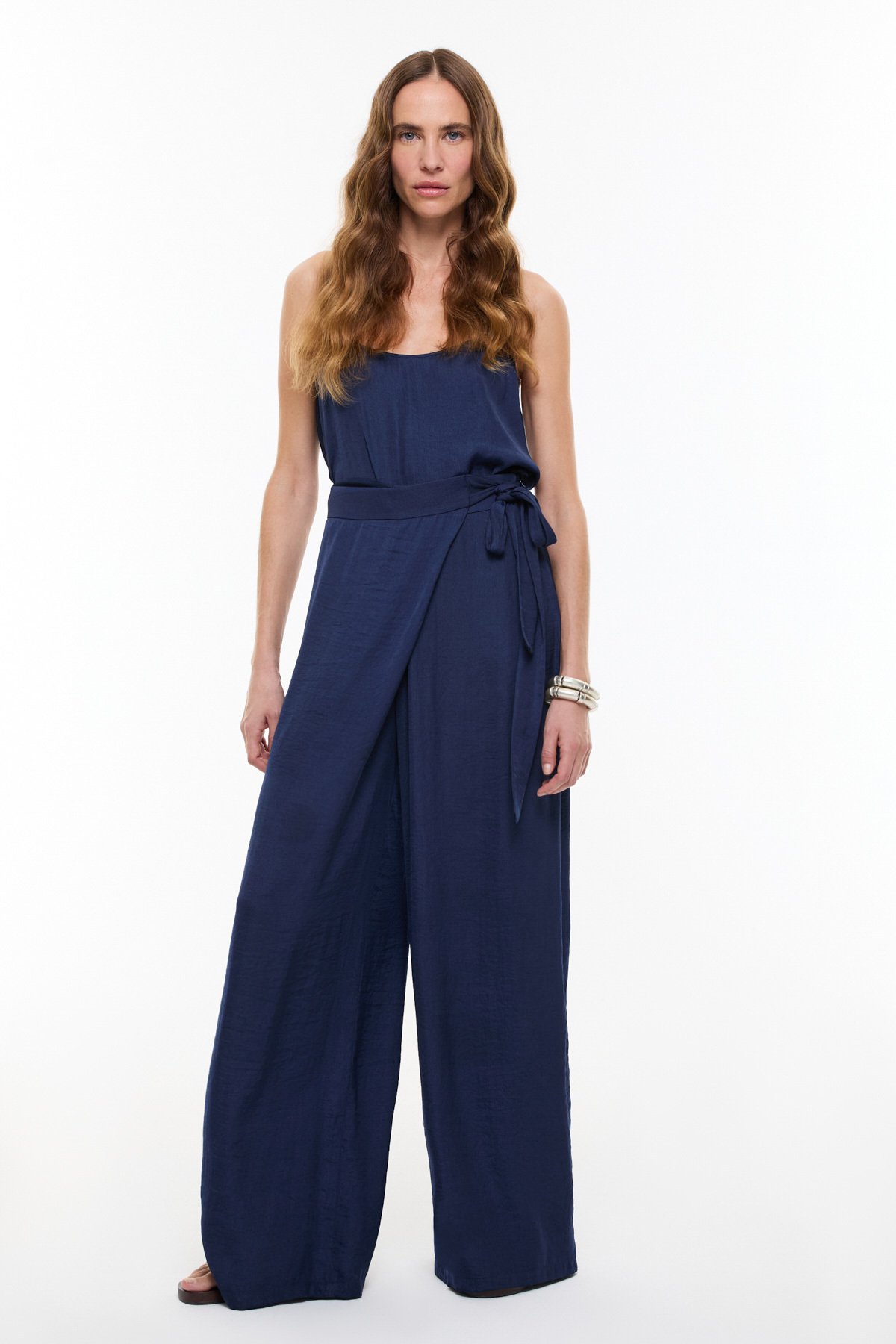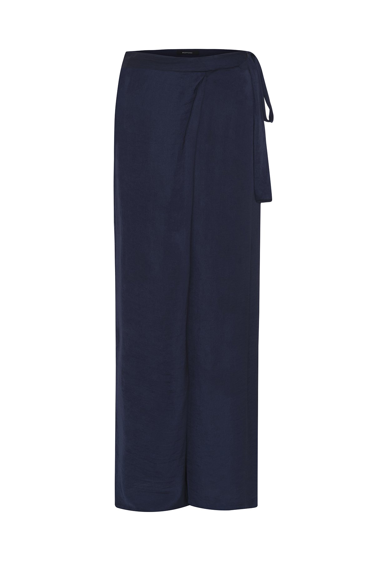 Kruvaze Görünümlü Bağlama Detaylı Geniş Paça Pantolon Lacivert