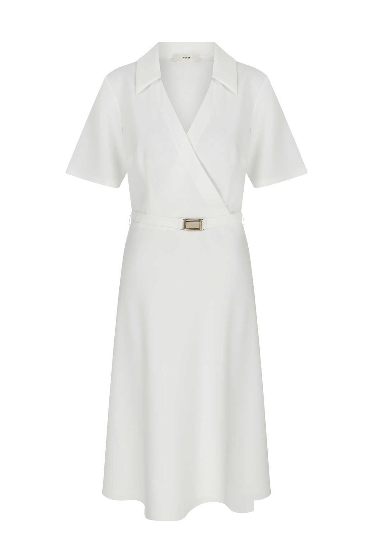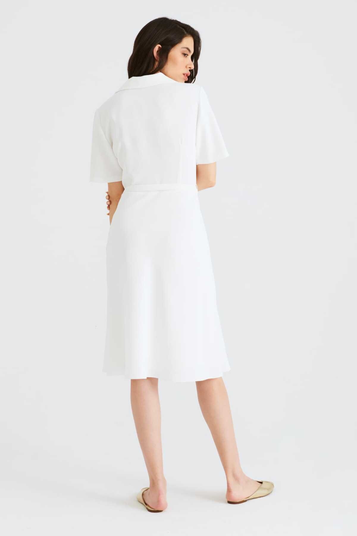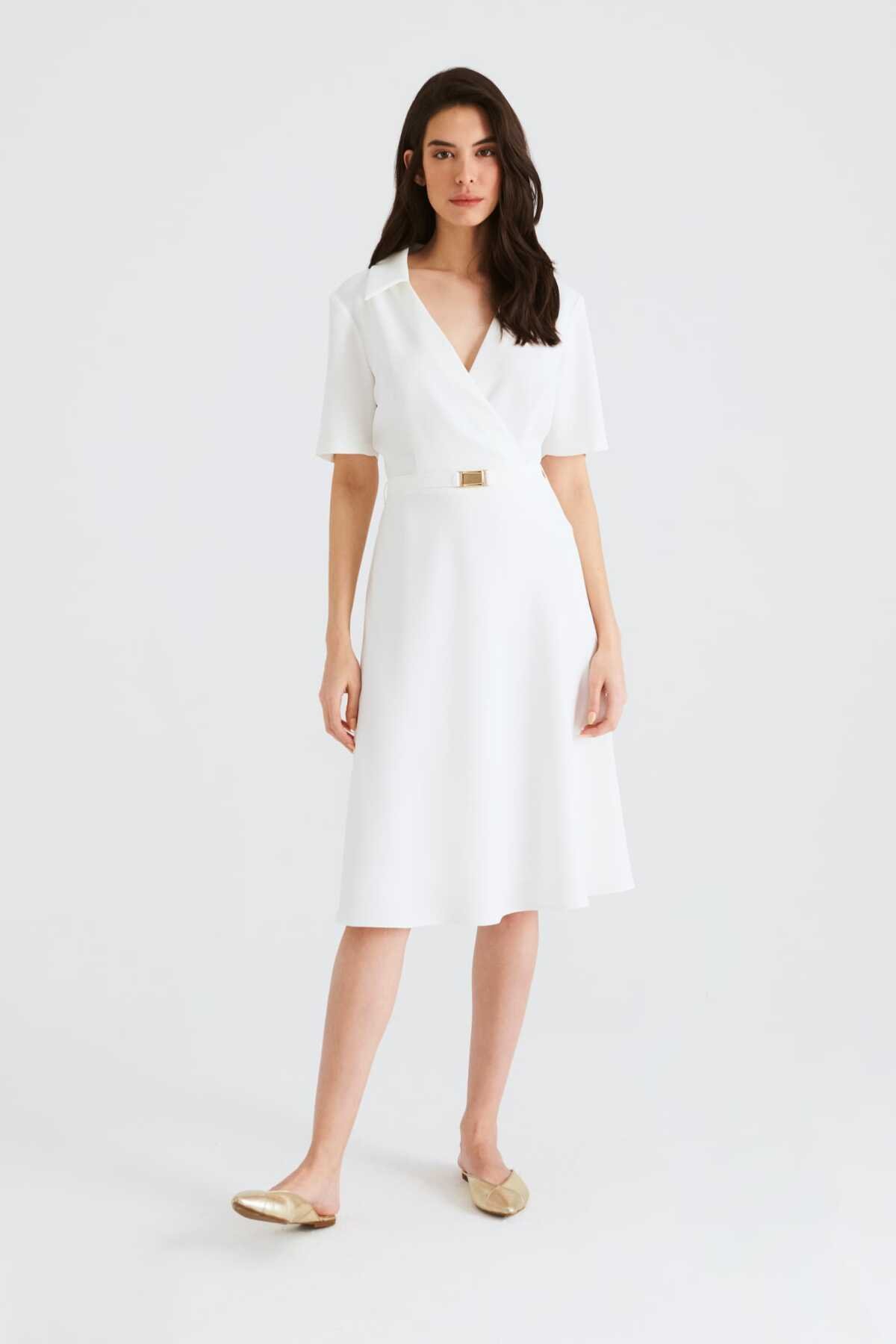Kruvaze Midi Boy Elbise Beyaz