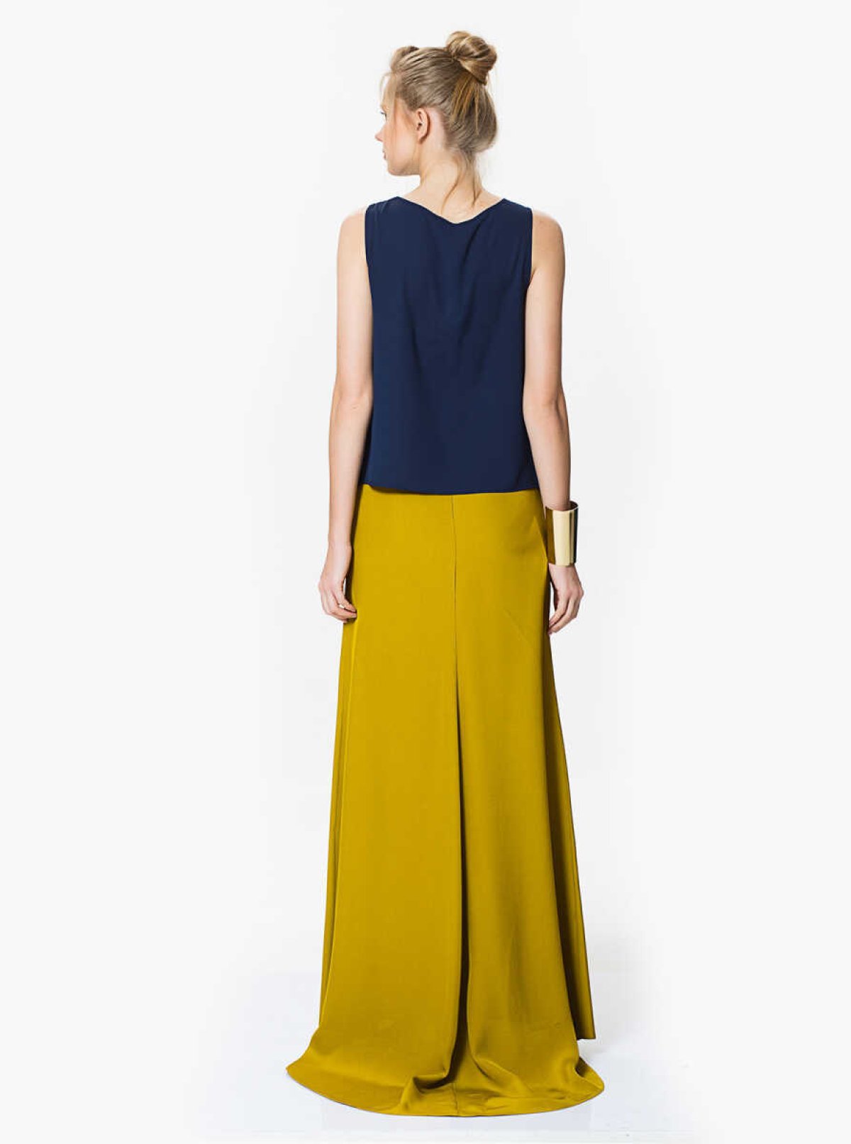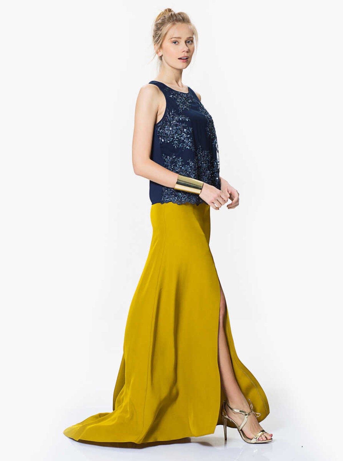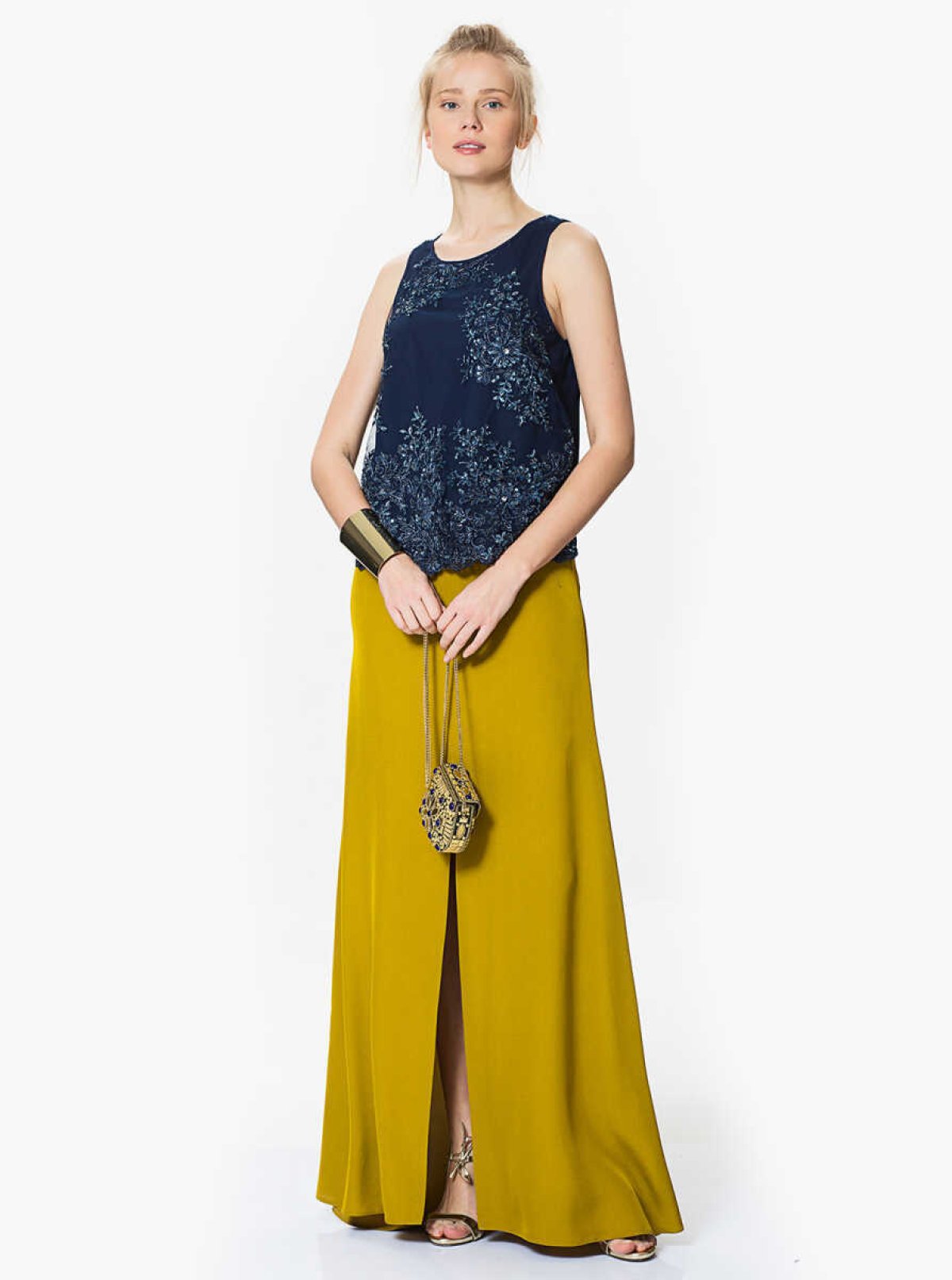 Kuyruk Detaylı Yırtmaçlı Açık Uzun Etek Olive