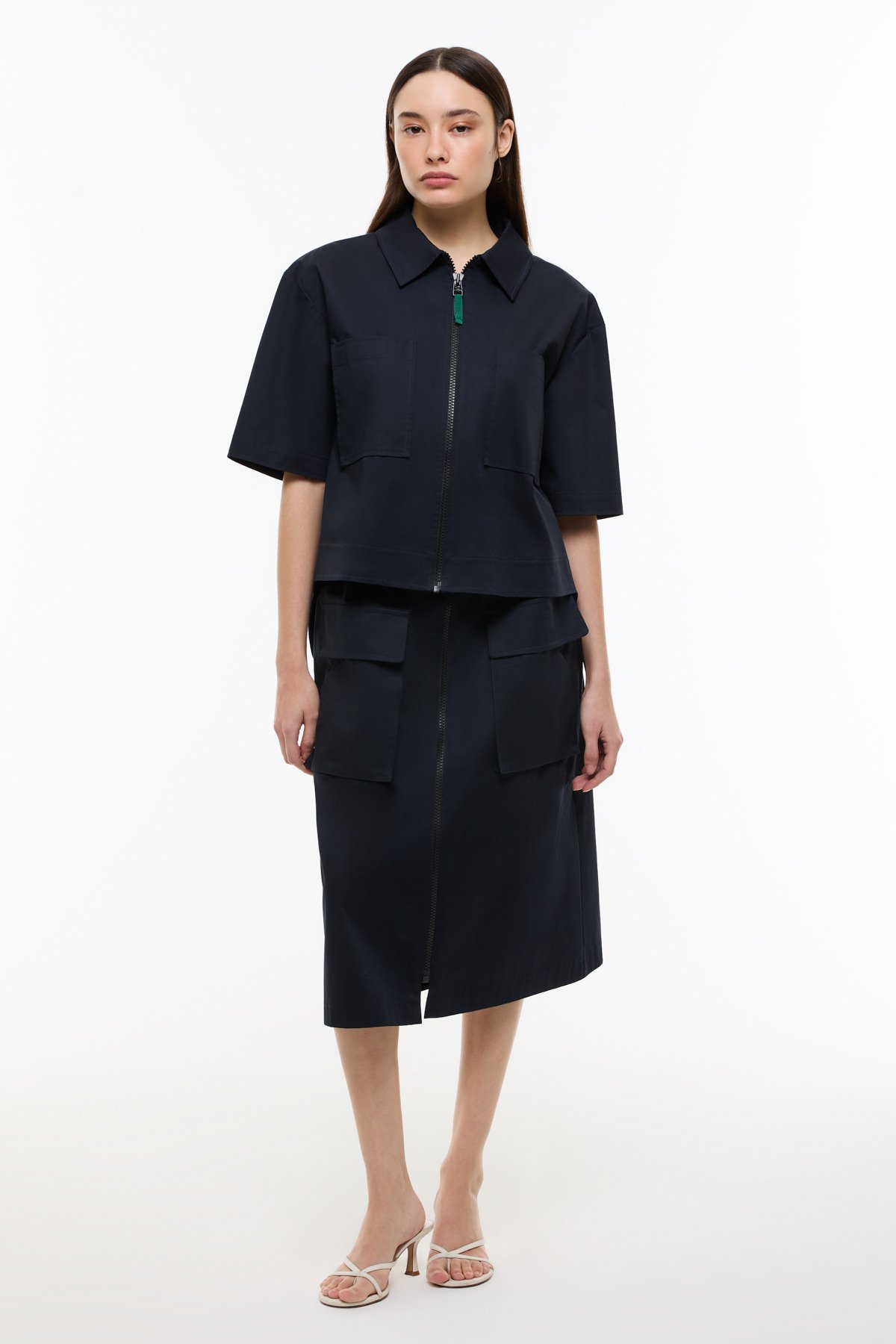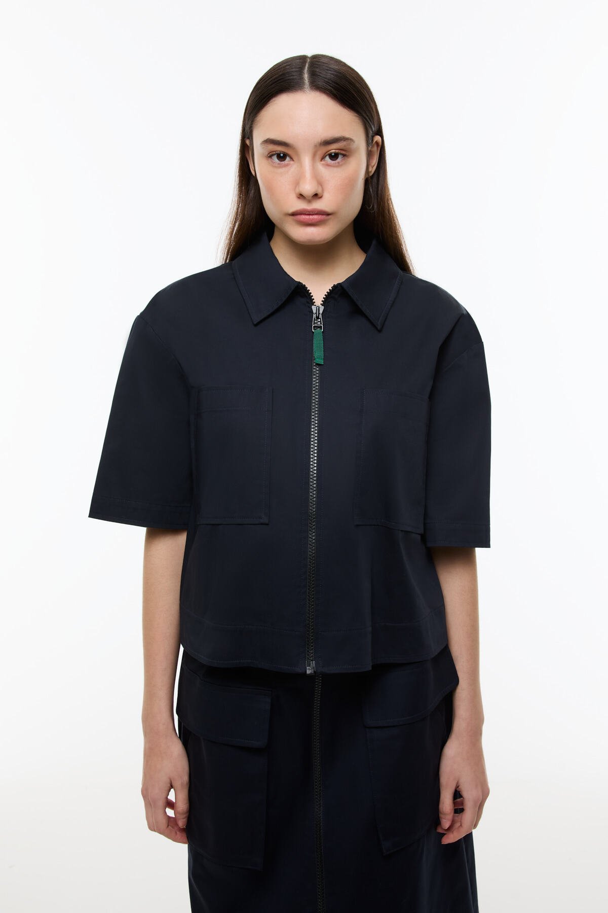 Önden Fermuarlı Çift Cepli Mont Ceket Lacivert - 1