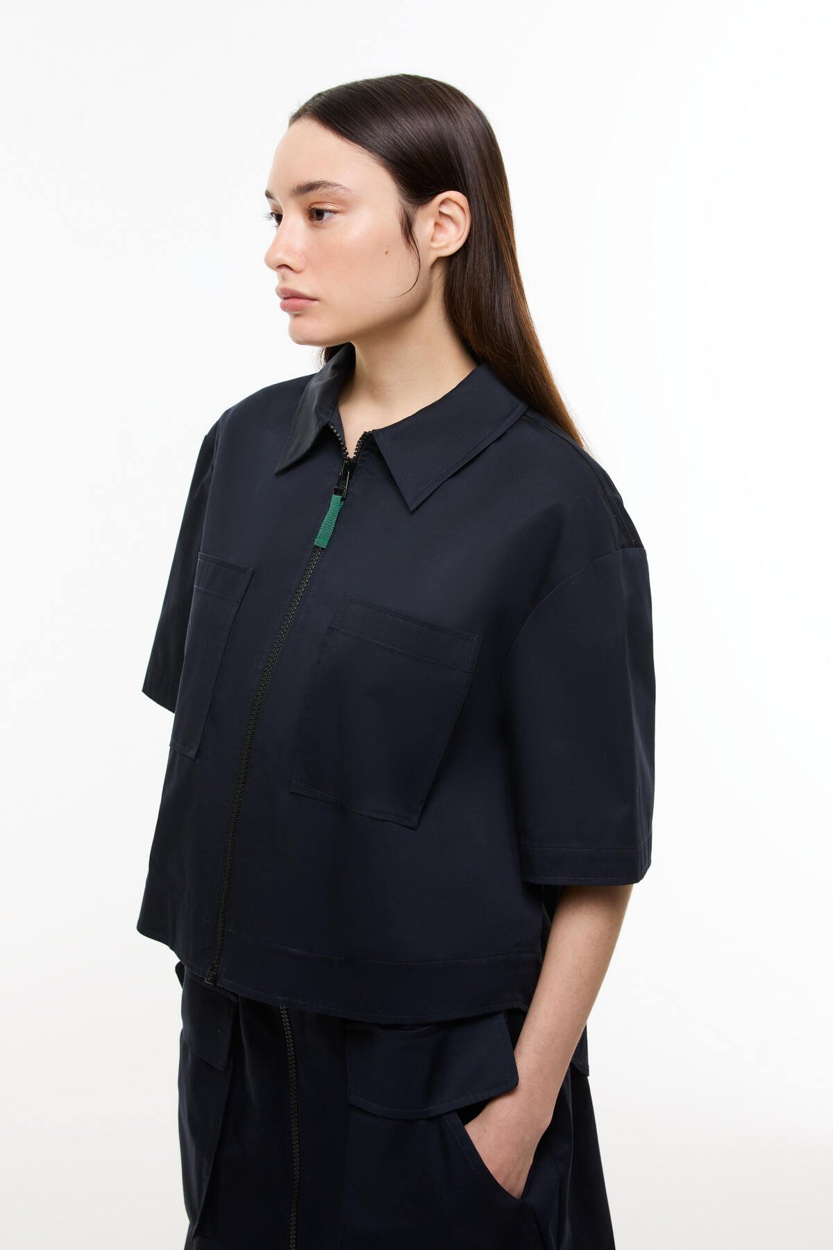 Önden Fermuarlı Çift Cepli Mont Ceket Lacivert - 6
