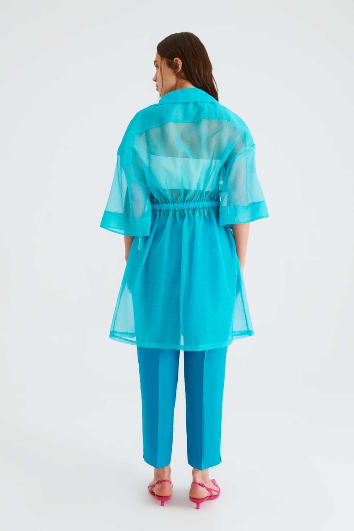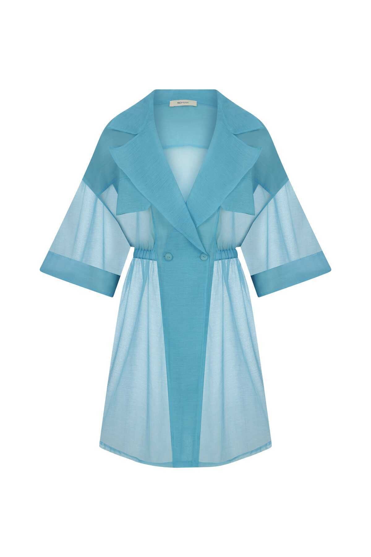 Lastikli Transparan Kadın Pardesü Turkuaz