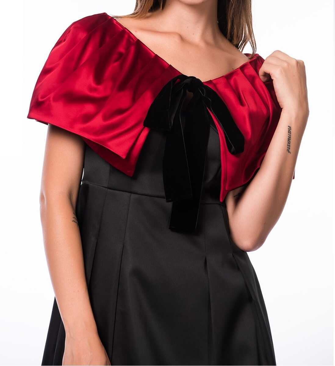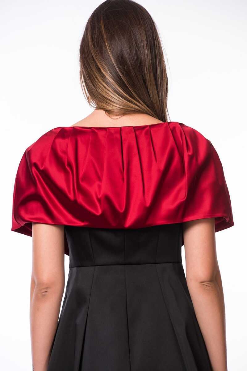 Omuz Detaylı Bağlamalı Saten Kadın Kap Kırmızı