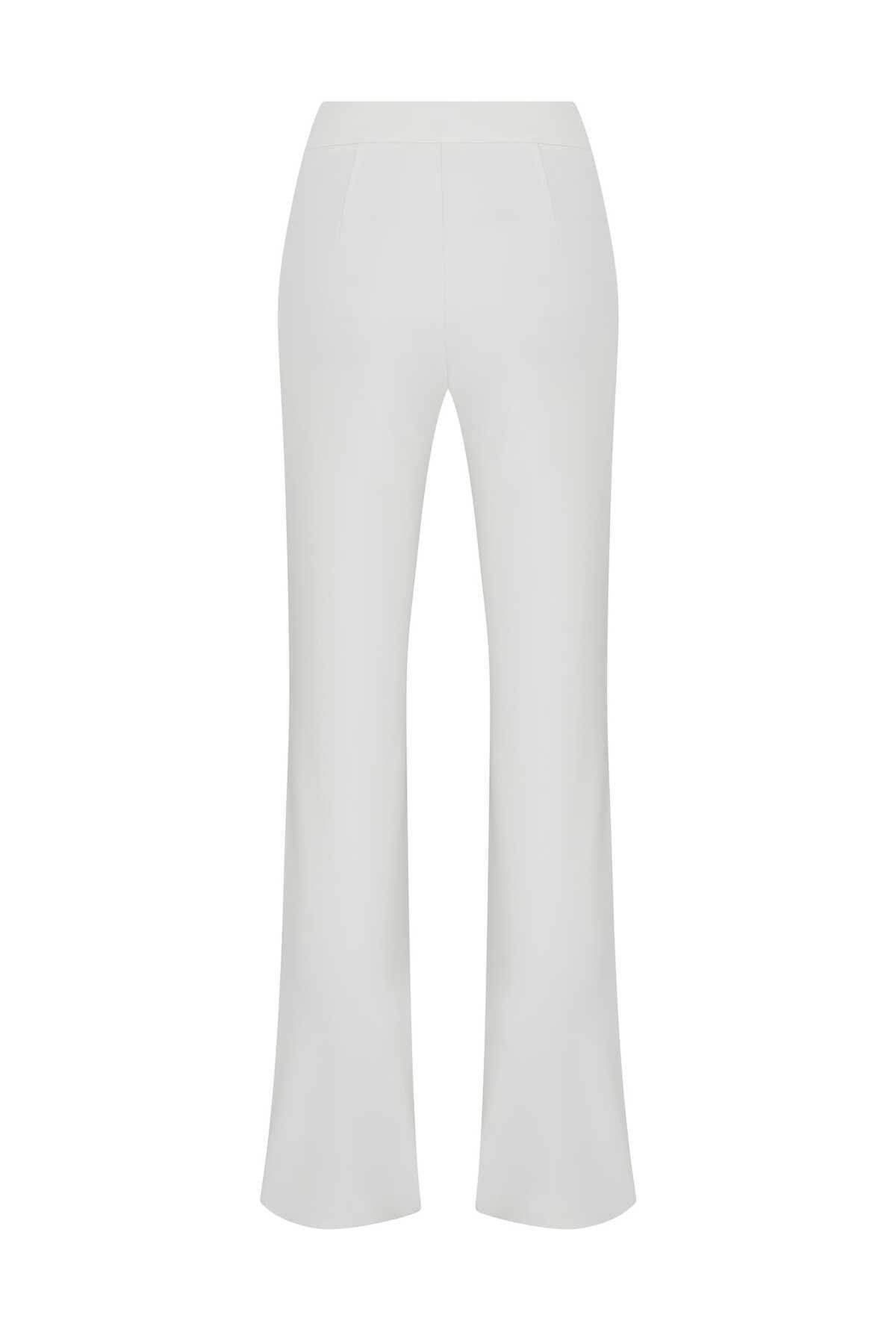 Paça Detaylı Kadın Pantolon Ekru