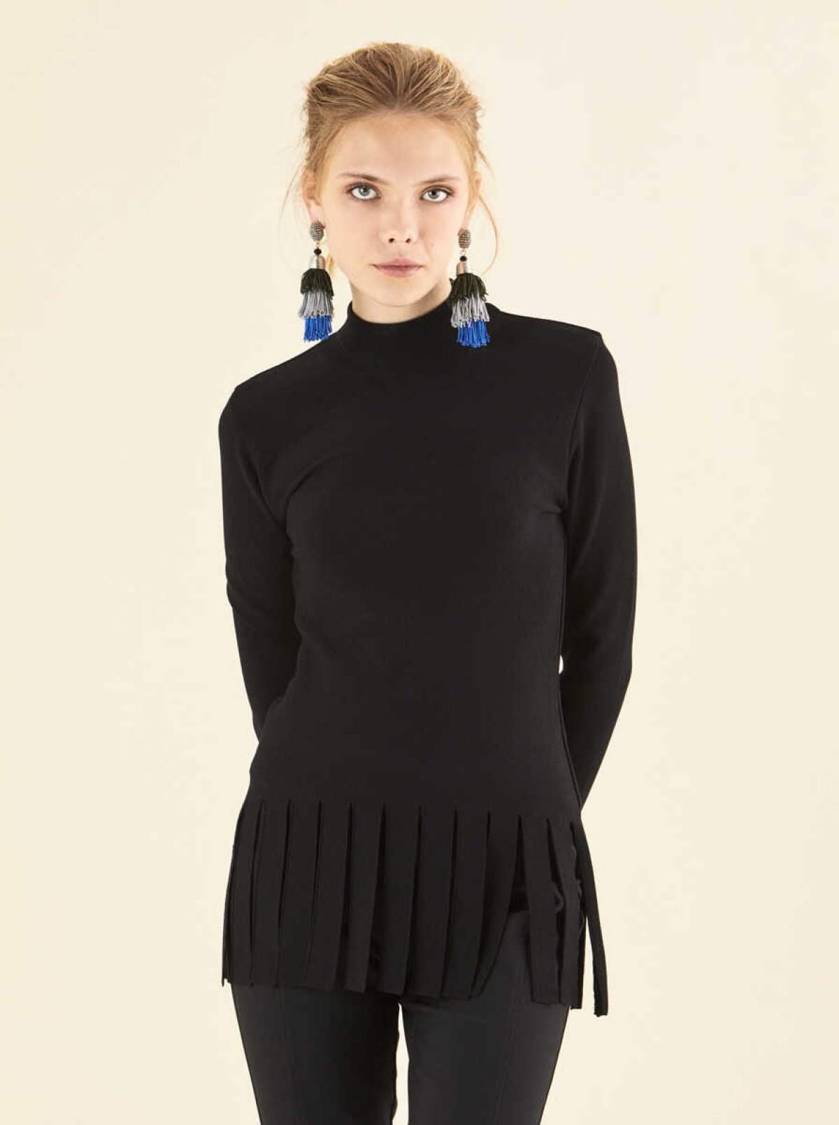 Parçalı Detaylı Triko Siyah