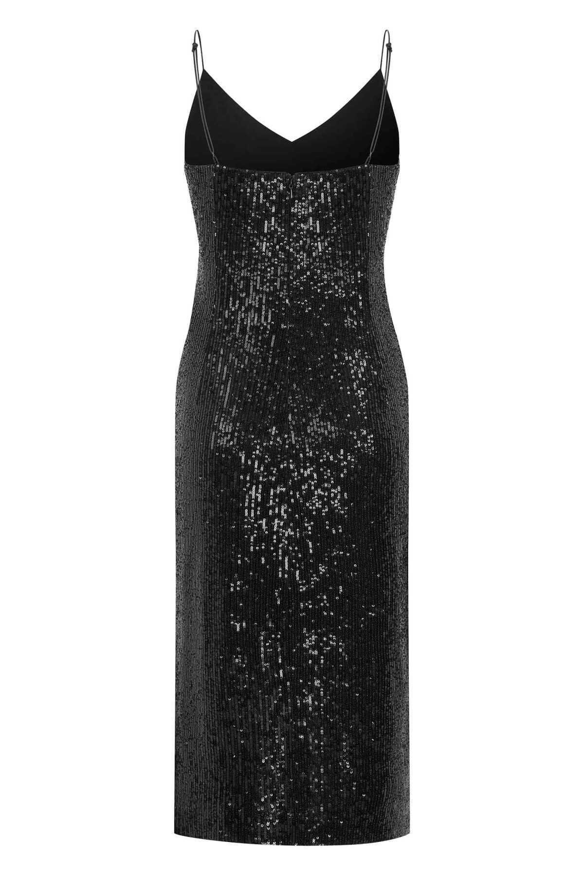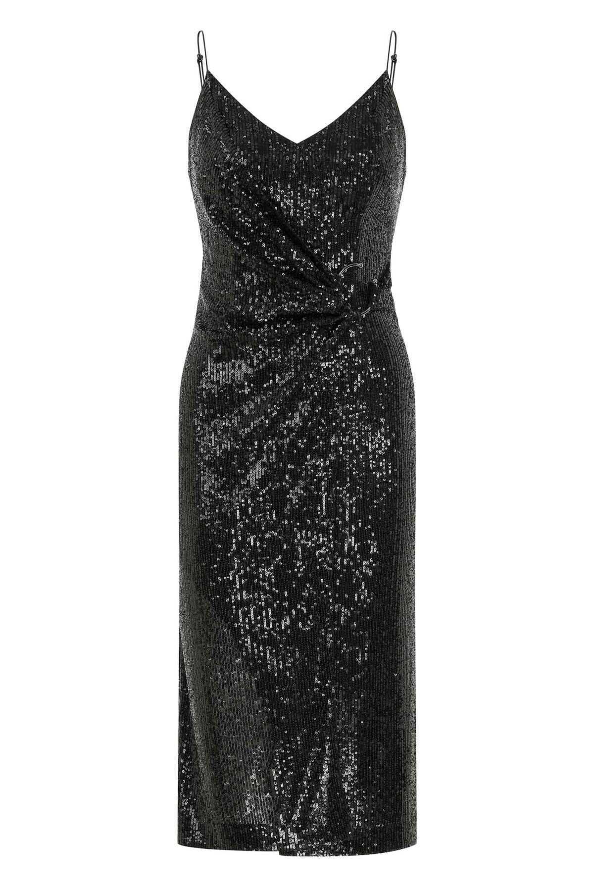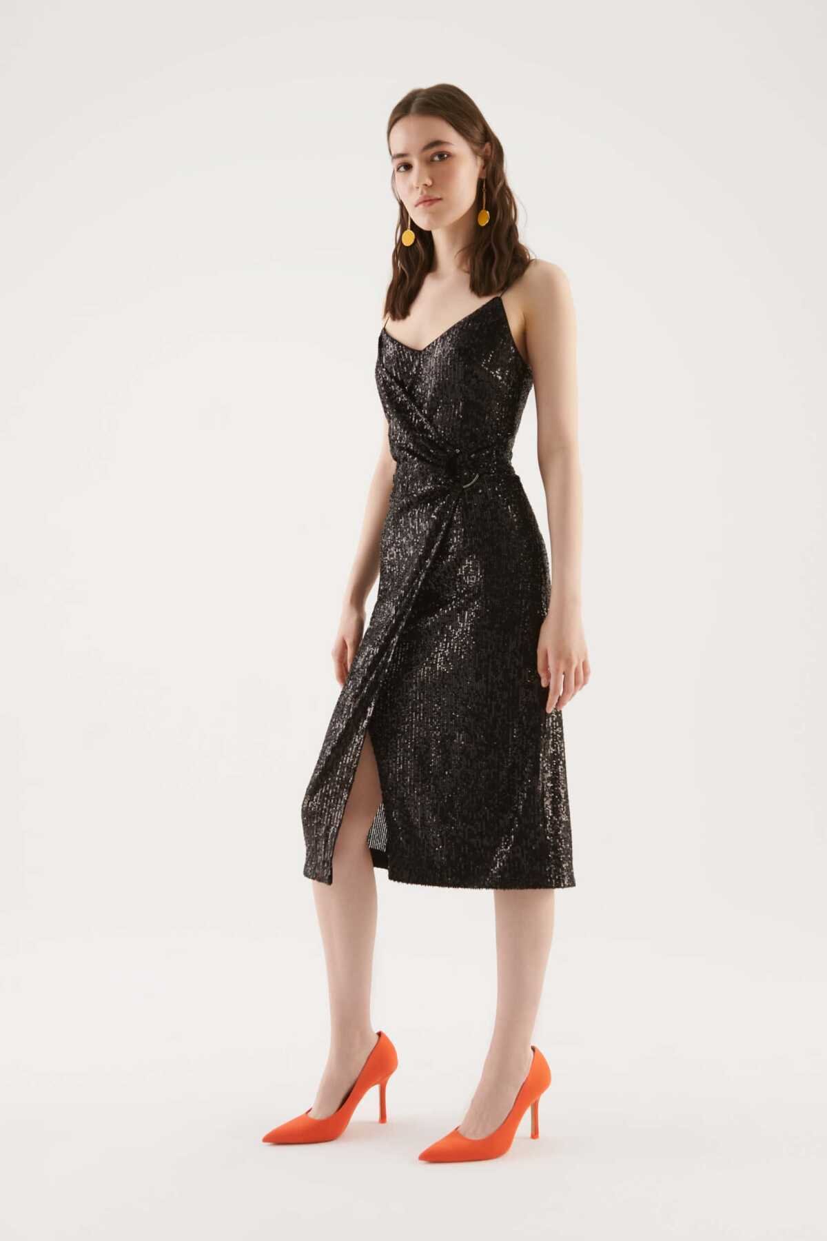 Otriş Aksesuarlı Bisiklet Yaka Payet Mini Elbise Siyah