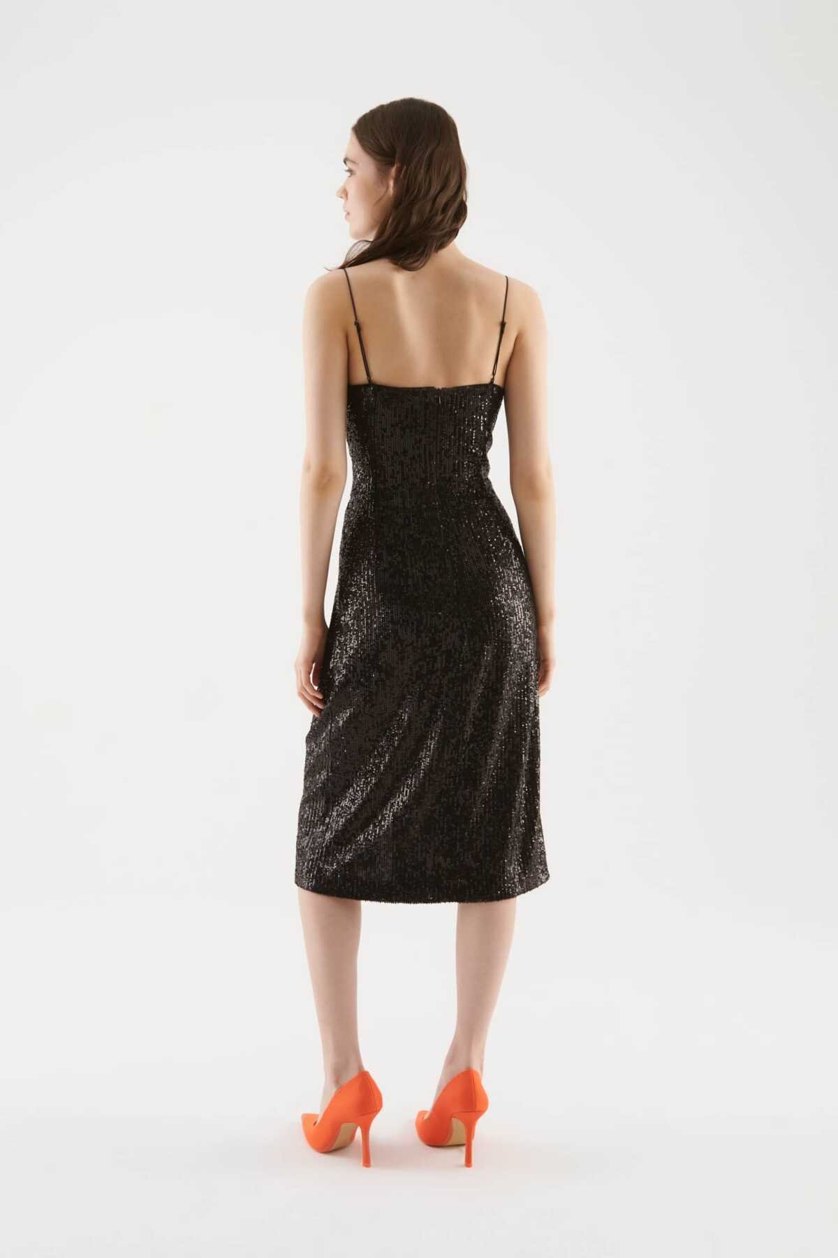 Yırtmaçlı Kolları Otriş Detaylı Elbise Siyah