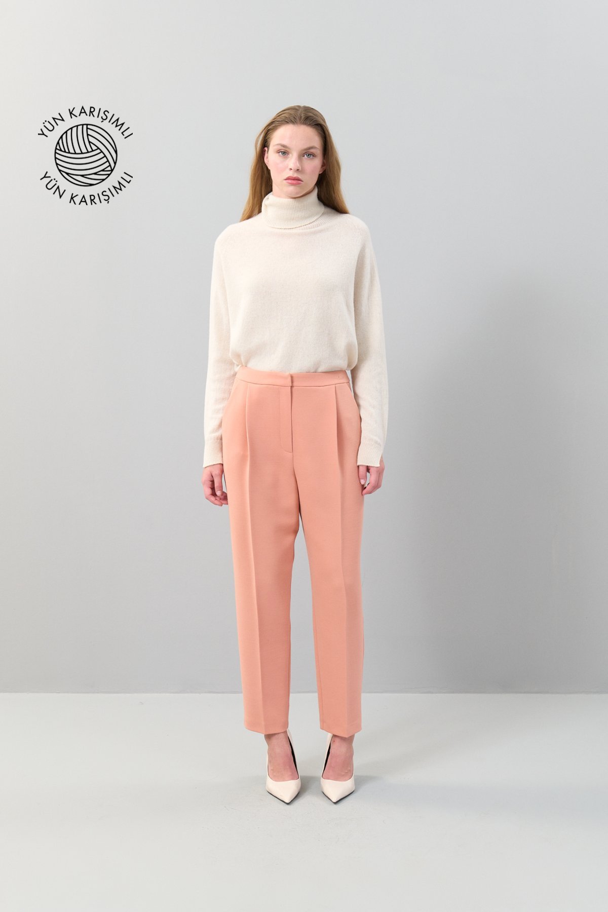 Yün Karışımlı Pileli Havuç Pantolon Y.Ağzı