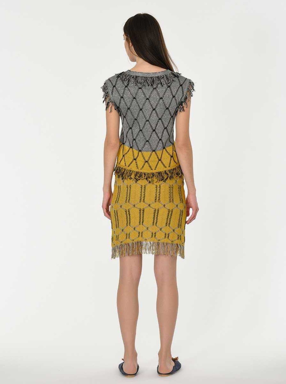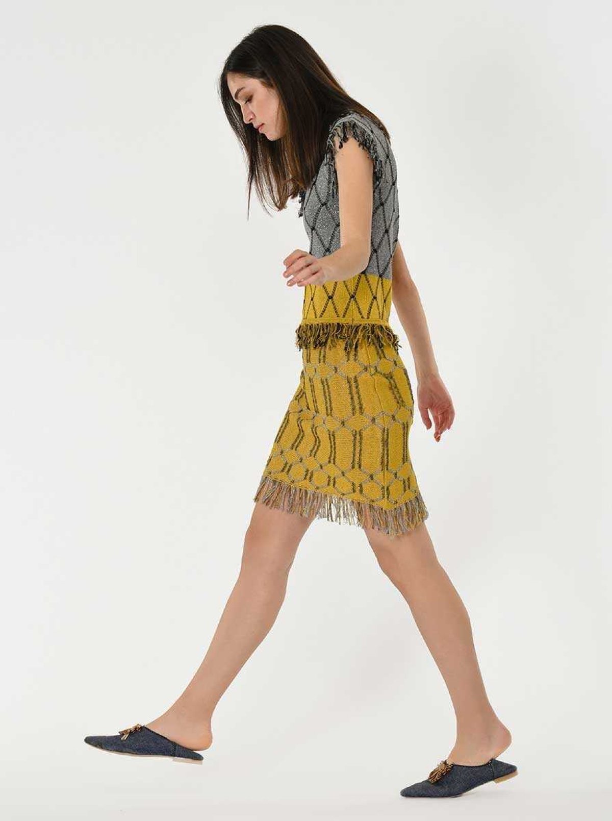 Pili Detaylı Çift Cepli Mini Etek Taş