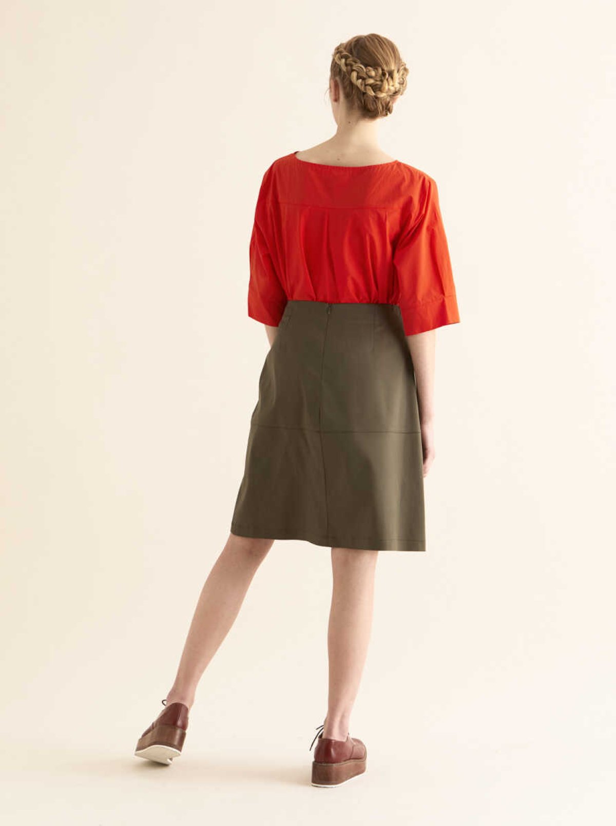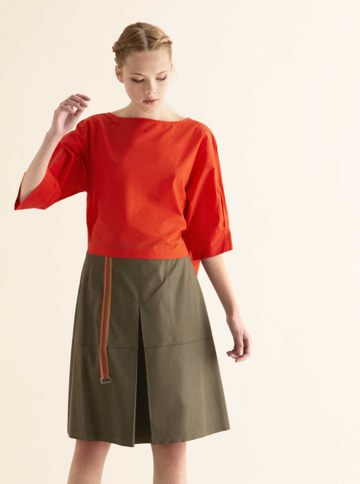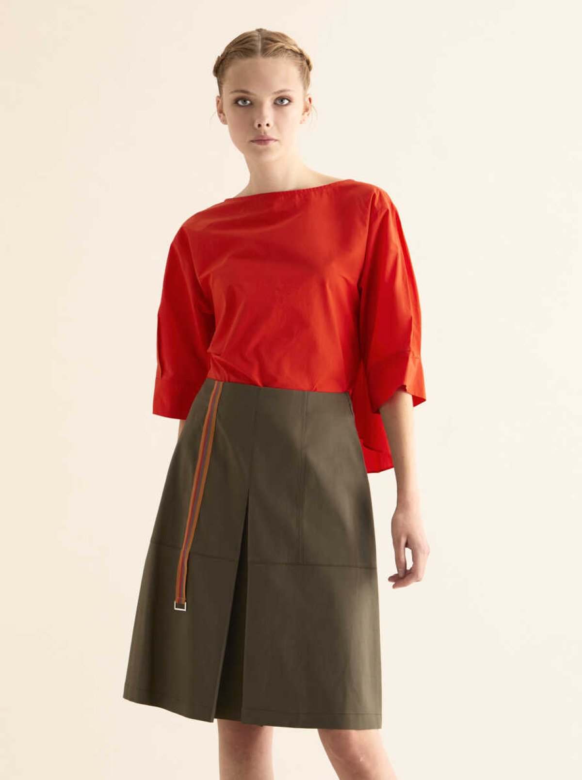 Şerit Detaylı Etek Haki