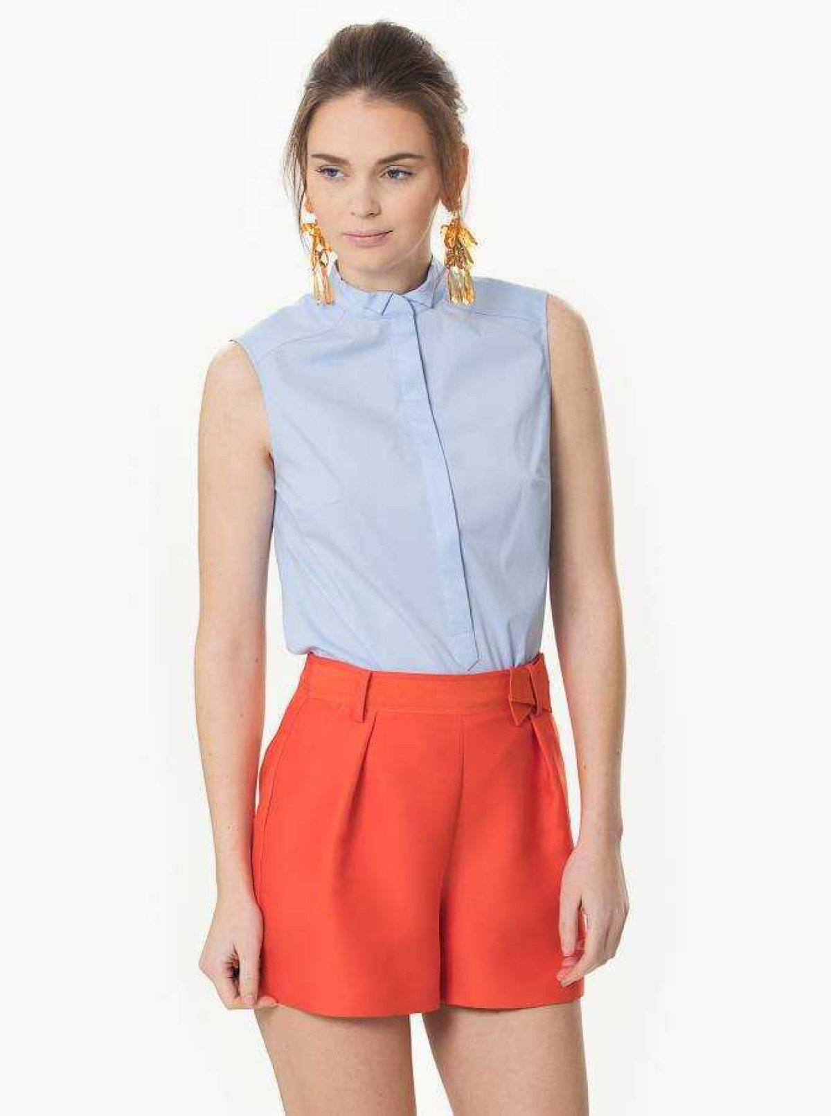 Sıfır Kol Düğmeli Gömlek Mavi
