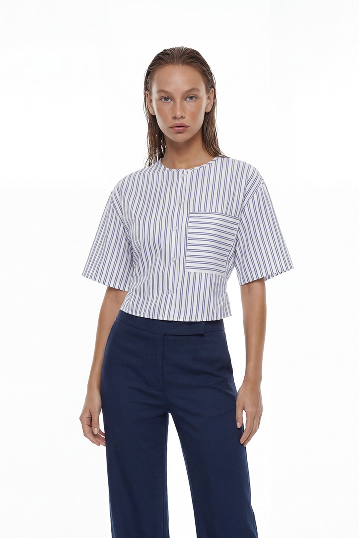 Sırt Dekolteli Bisiklet Yaka Crop Gömlek Standart Renk