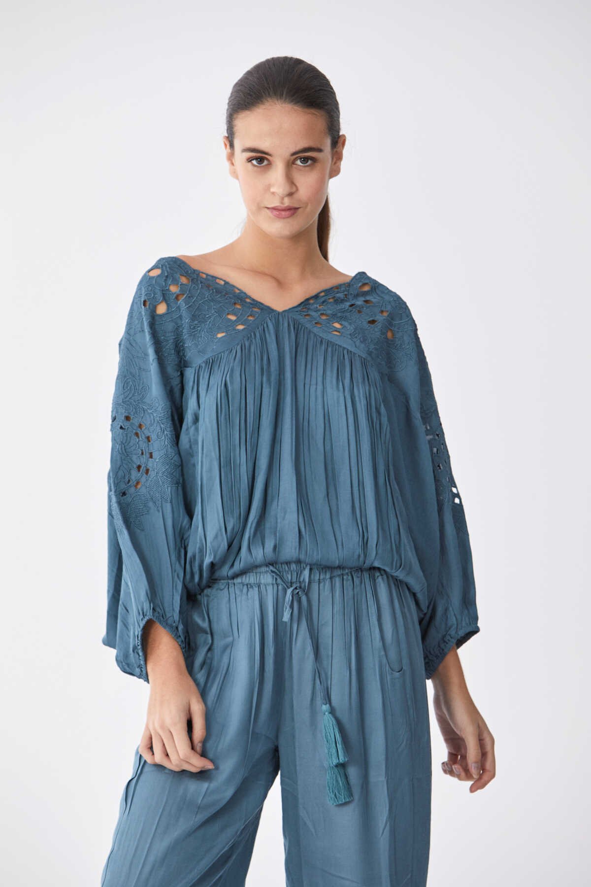 Ribana Yakalı Kısa Kol Bluzan Haki