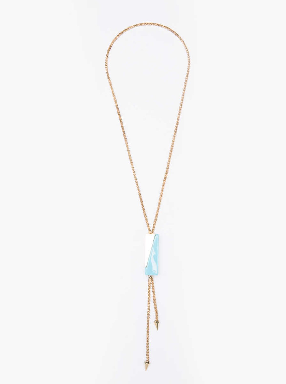 Taşlı Gold Zincir Kolye Turkuaz