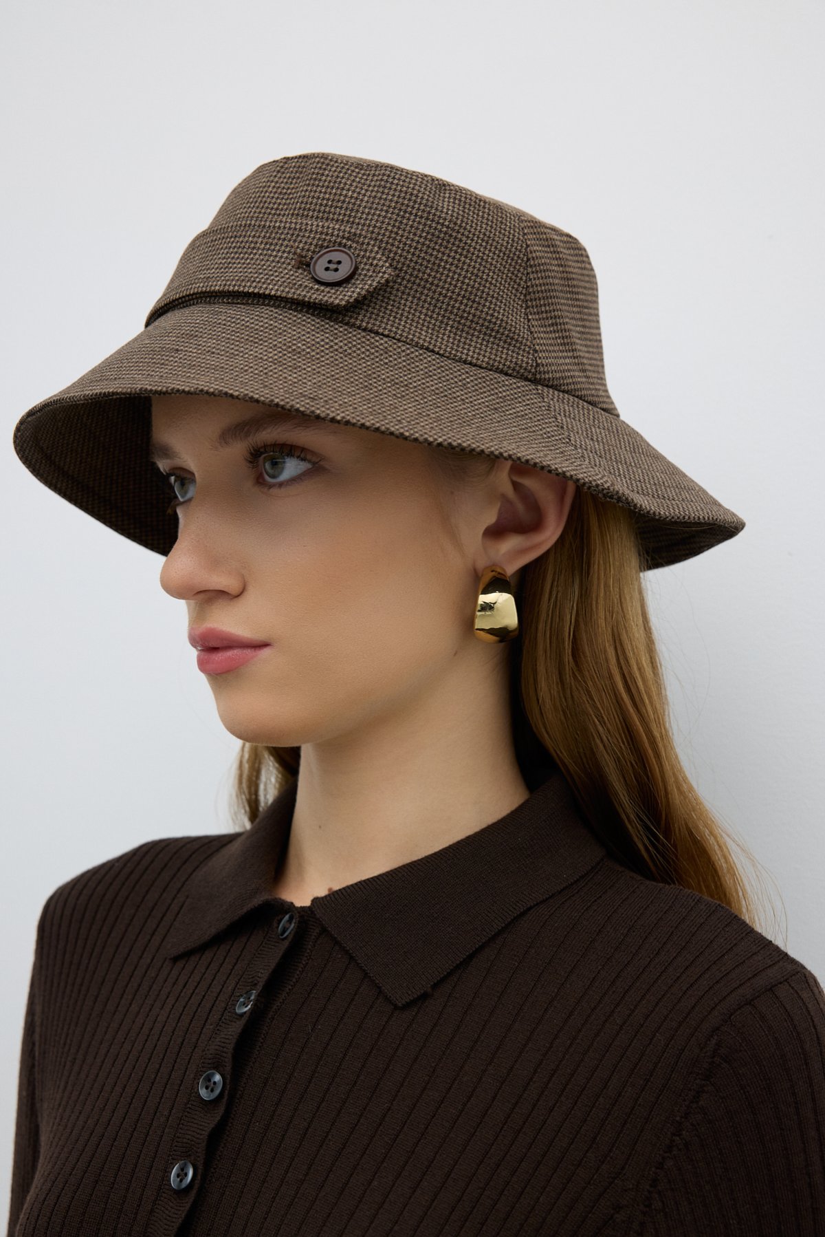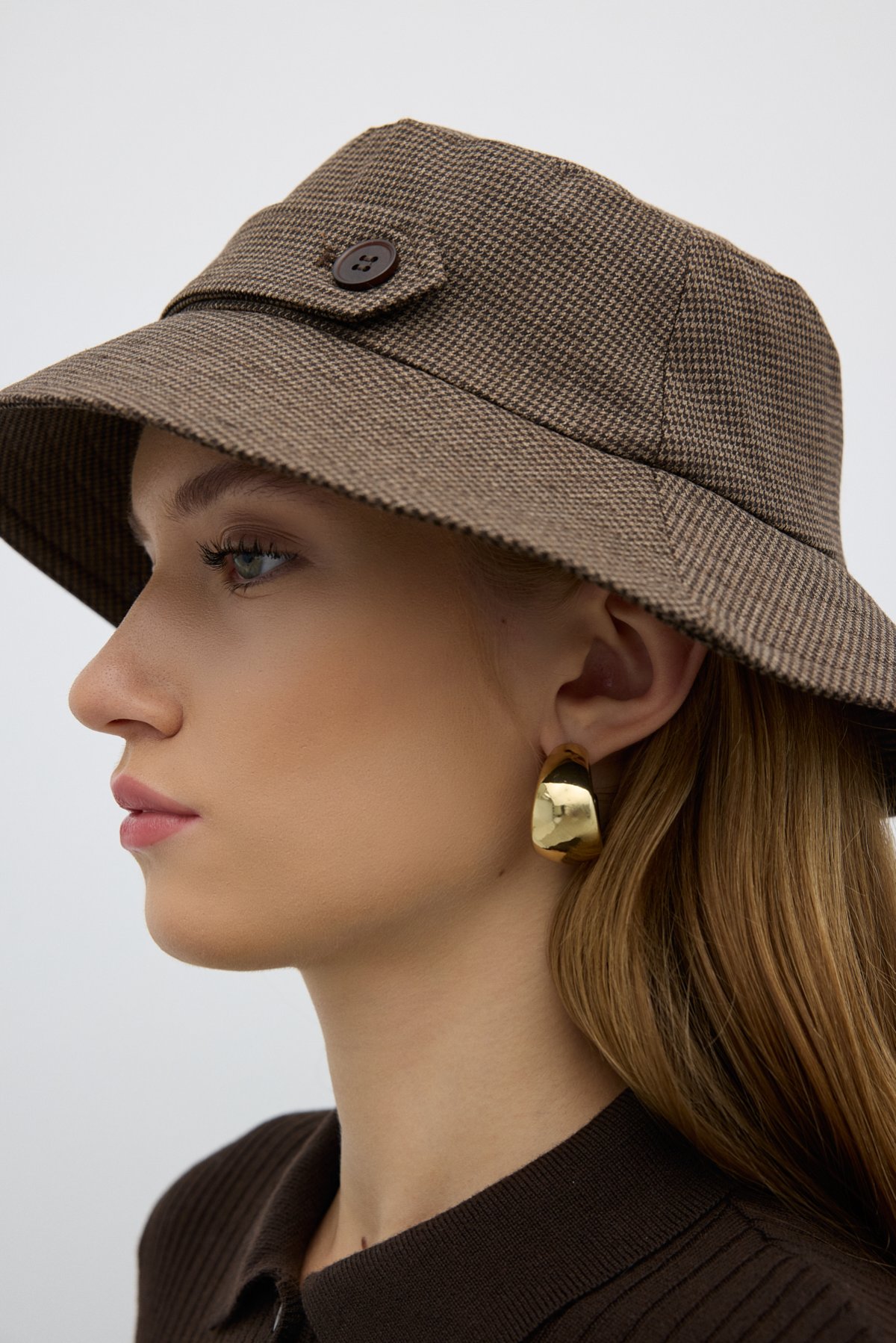 Tek Bant ve Düğmeli Şapka Kahve