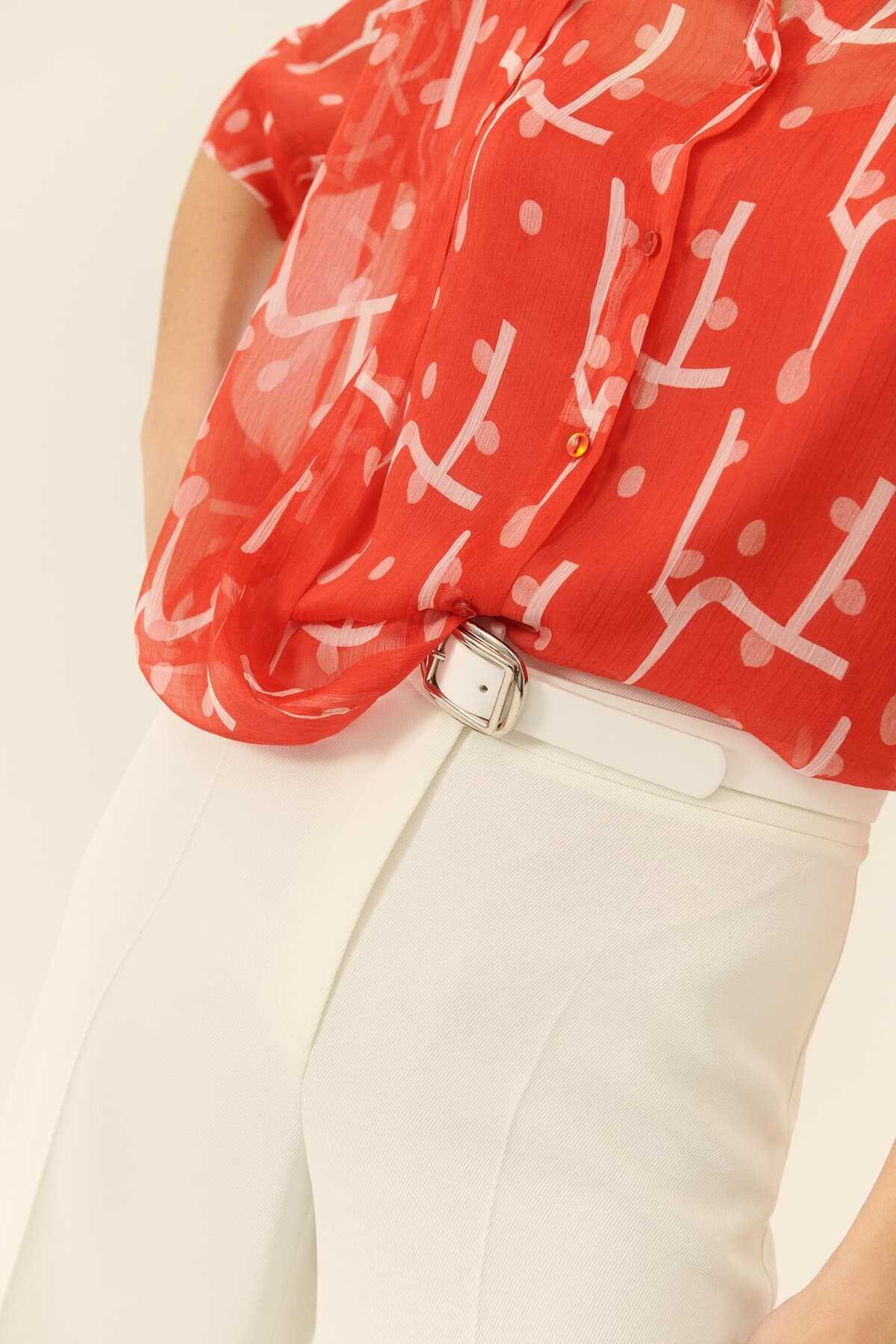 Asimetrik Bağlamalı Desenli Şifon Kadın Gömlek Standart Renk