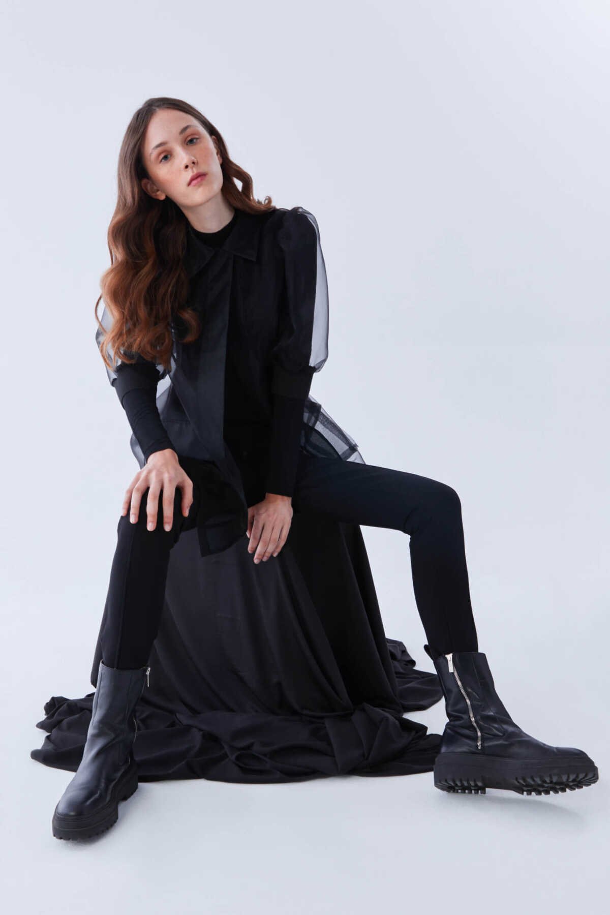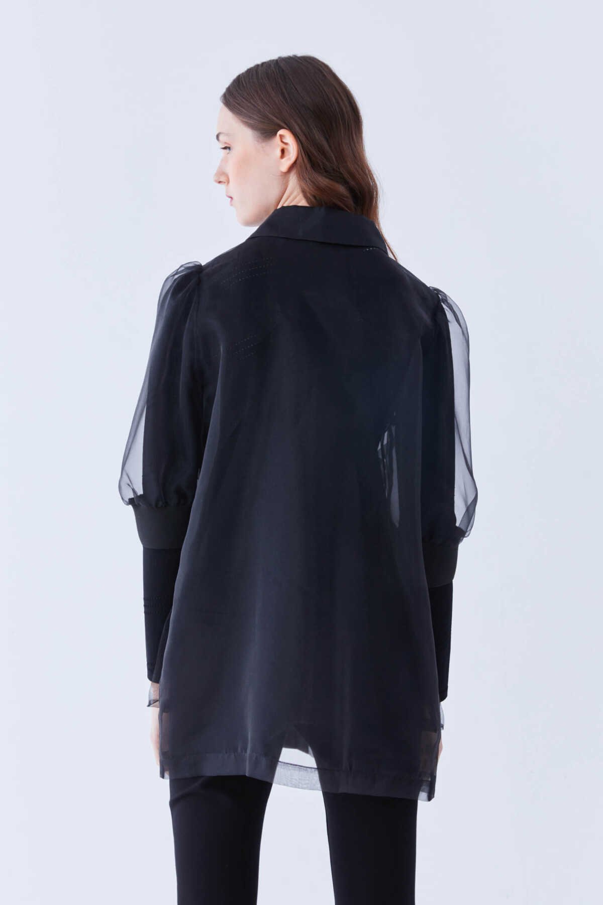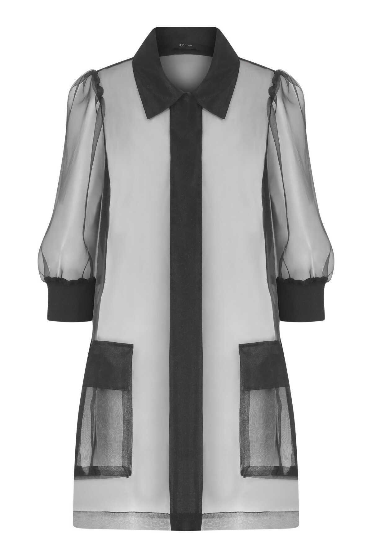 Transparan Uzun Kadın Ceket Siyah