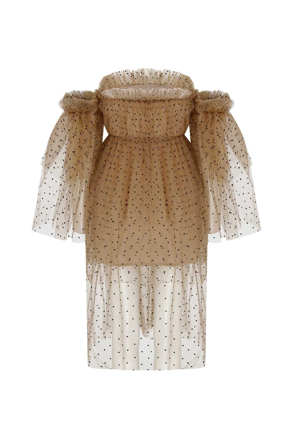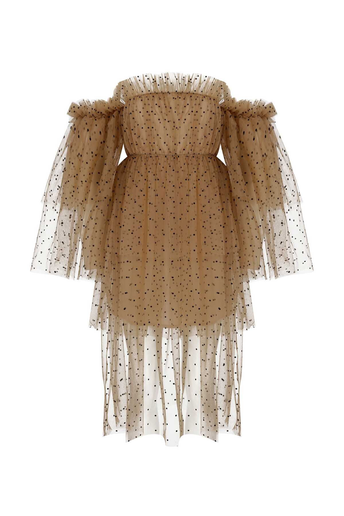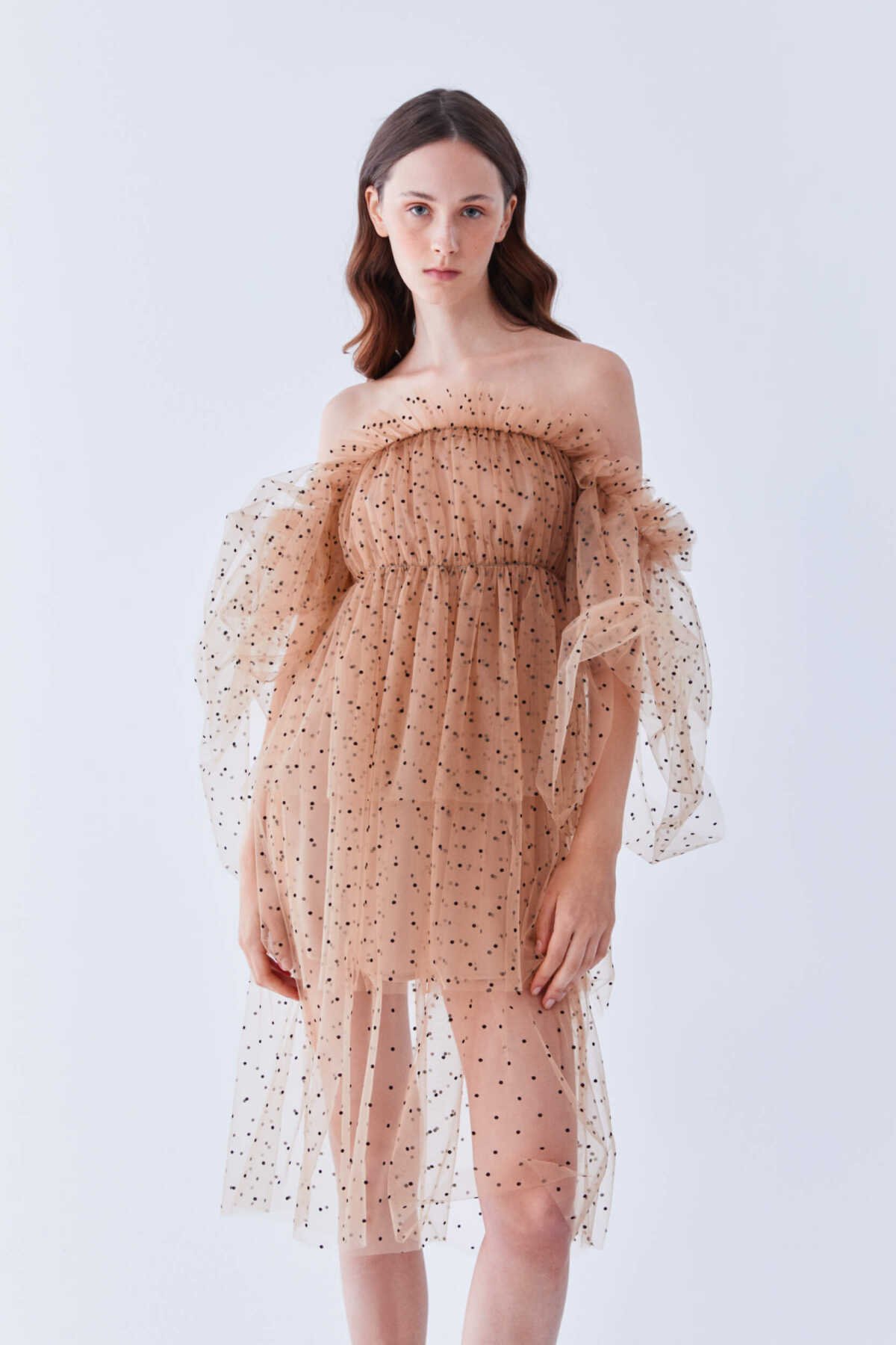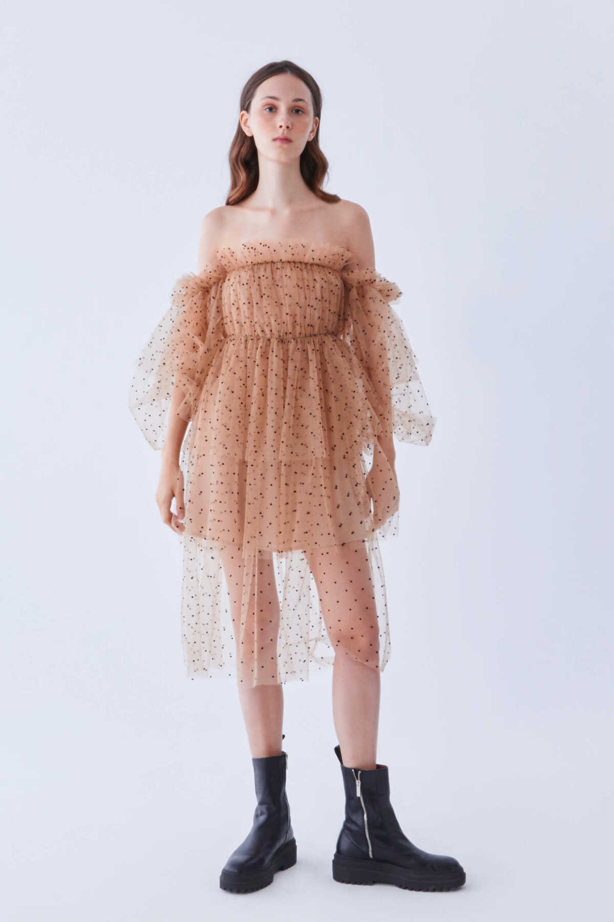 Tül Detaylı Kayık Yaka Elbise Standart Renk