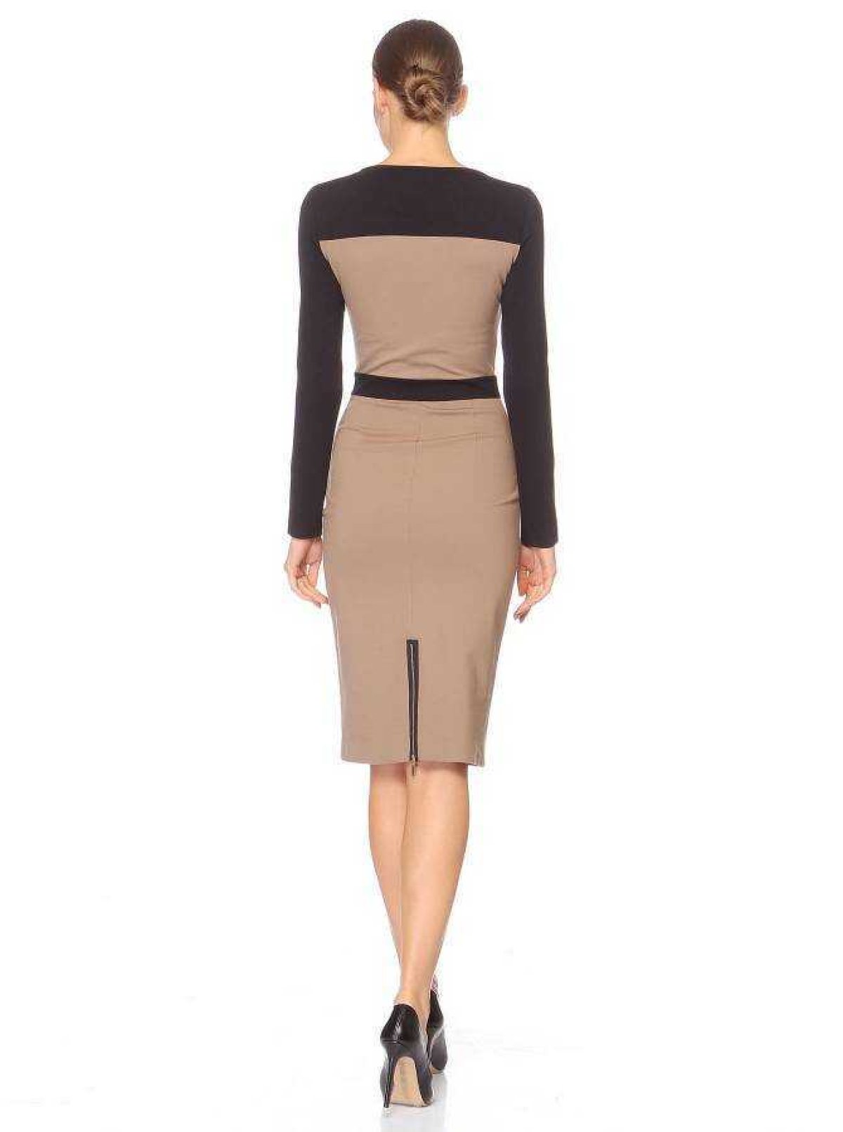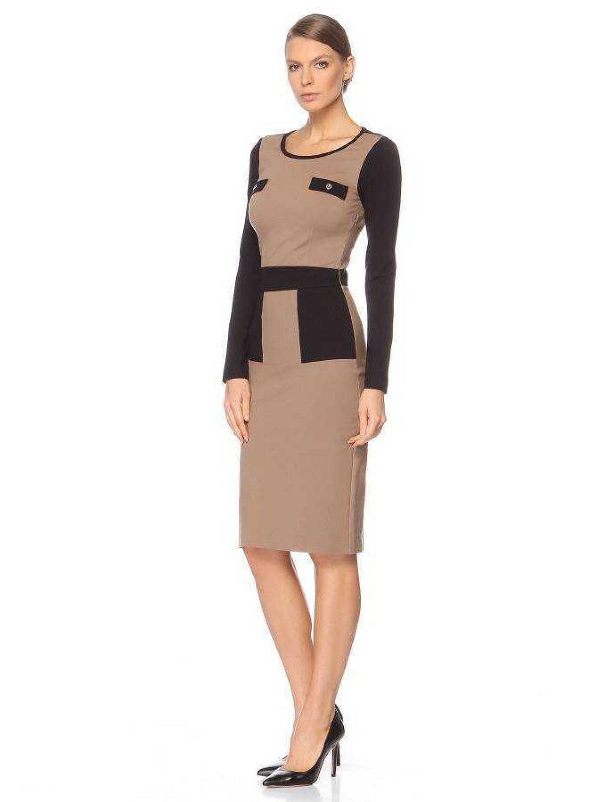 Uzun Kol Detaylı Kum Günlük Elbise Bej- Siyah