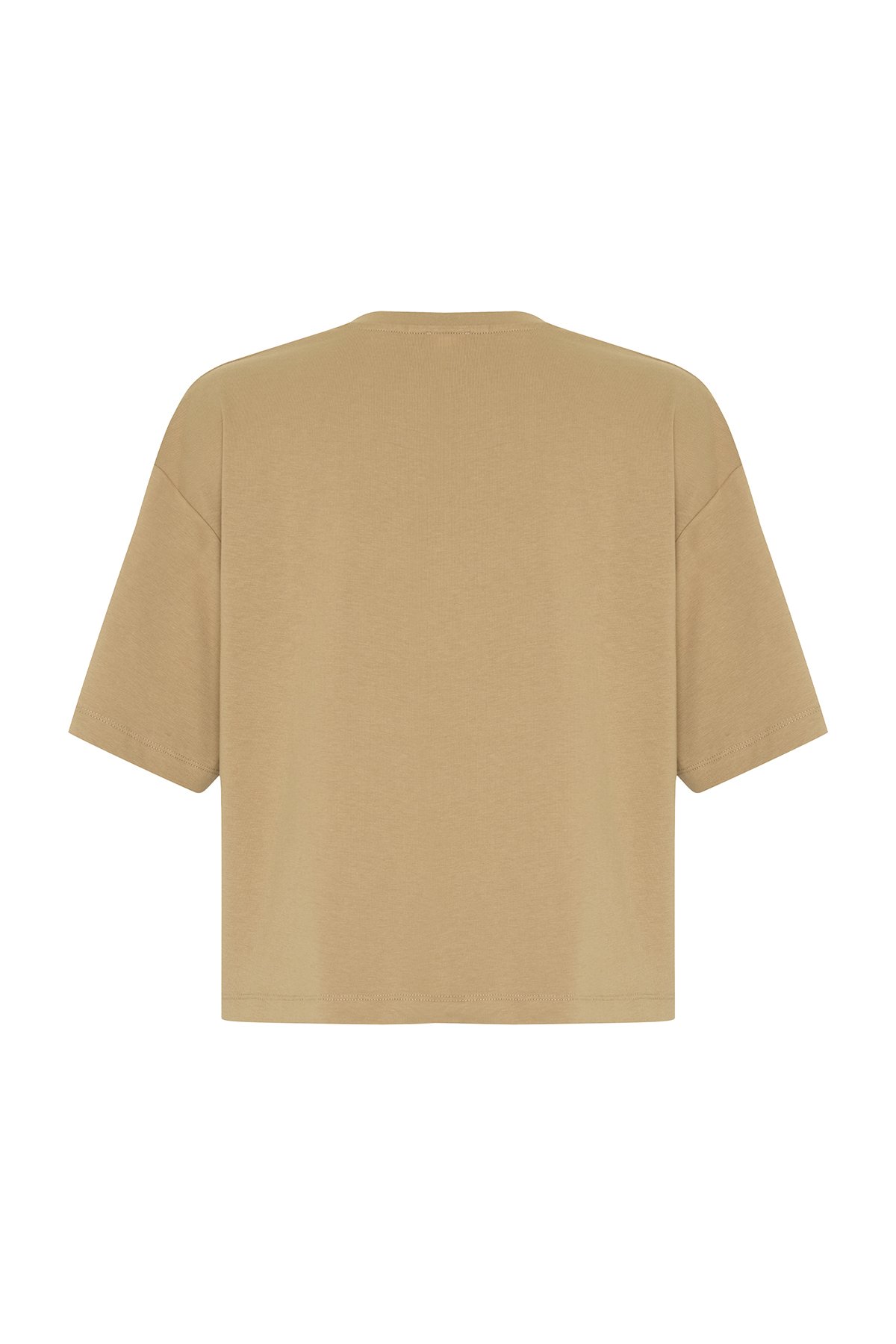 V Yaka Embrode Nakışlı T-shirt Kahve - 4