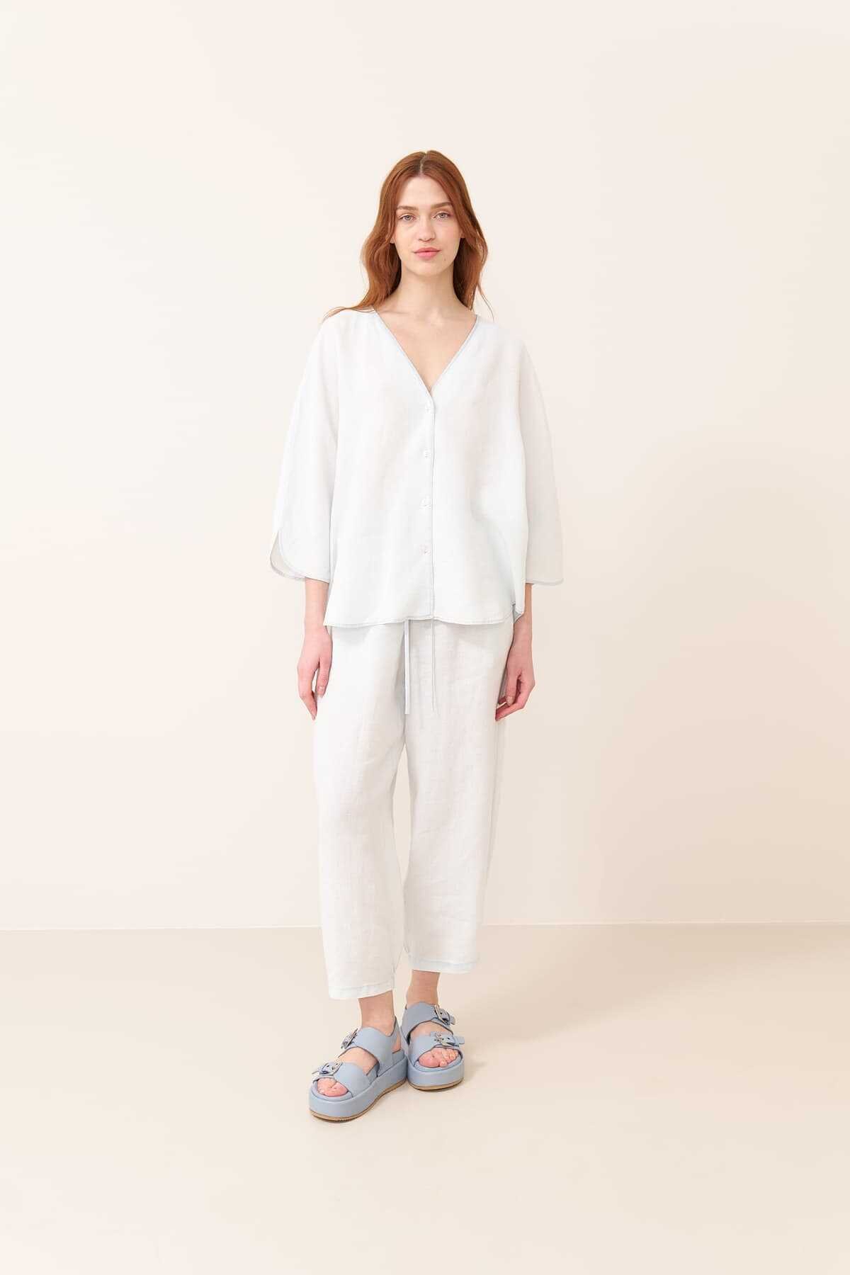 Pili Detaylı Beli Kemerli Gömlek Beyaz