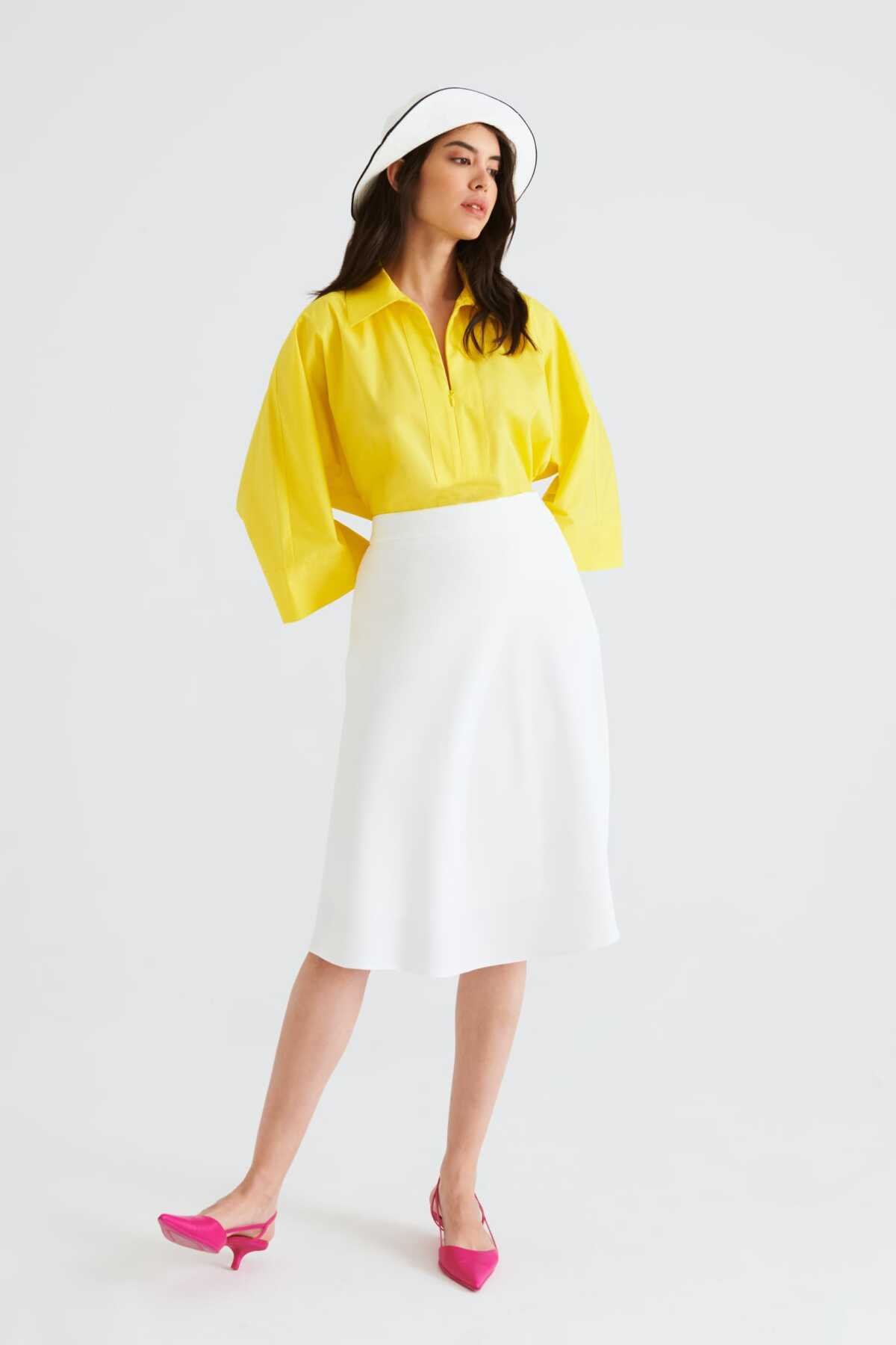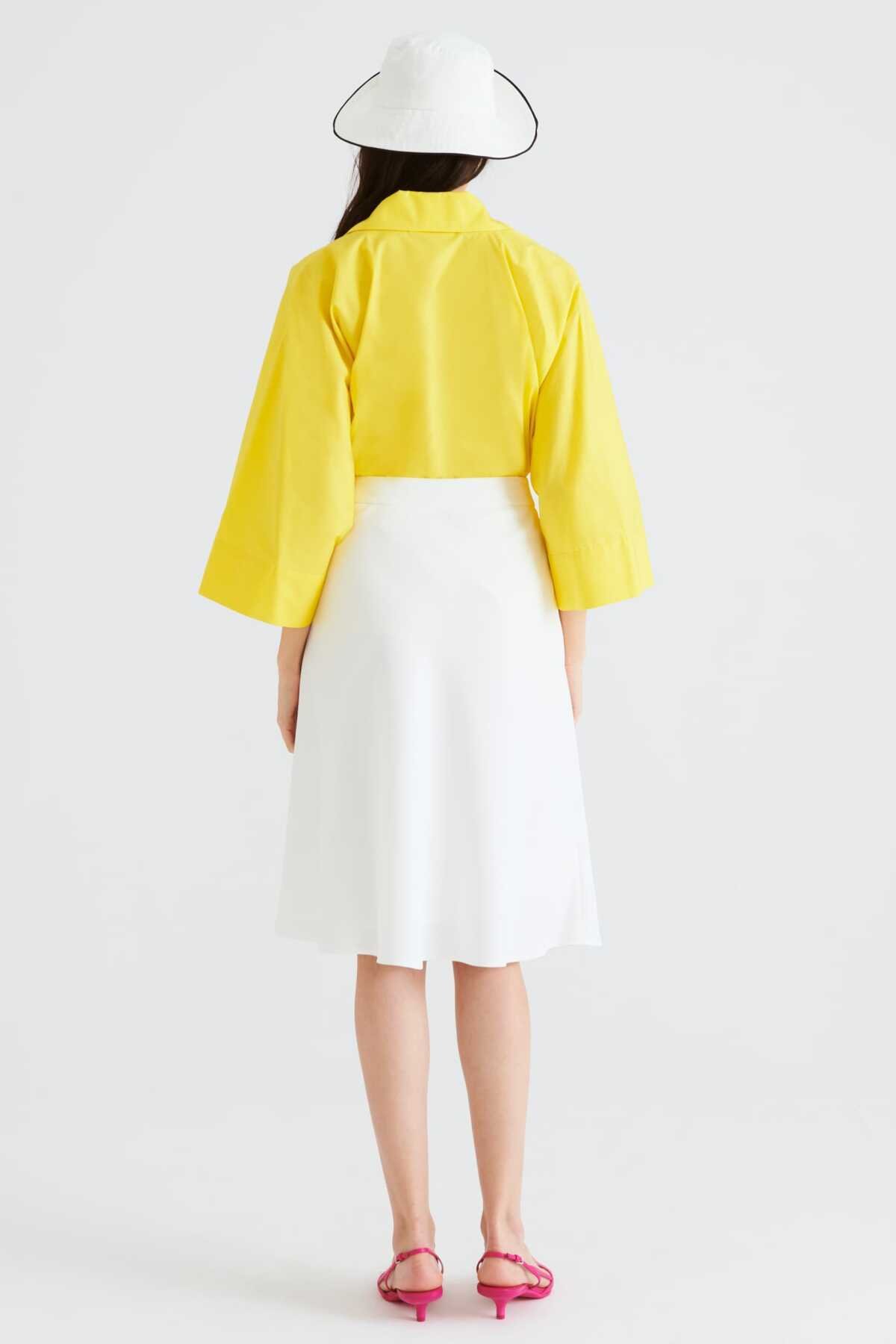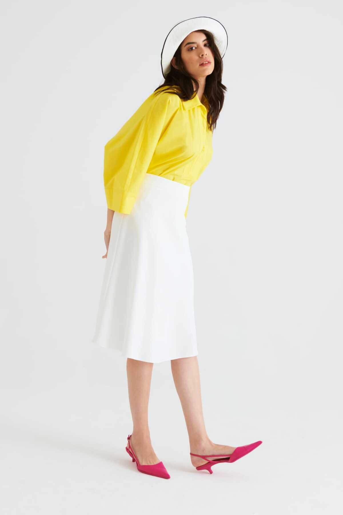 Volanlı Midi Boy Etek Beyaz