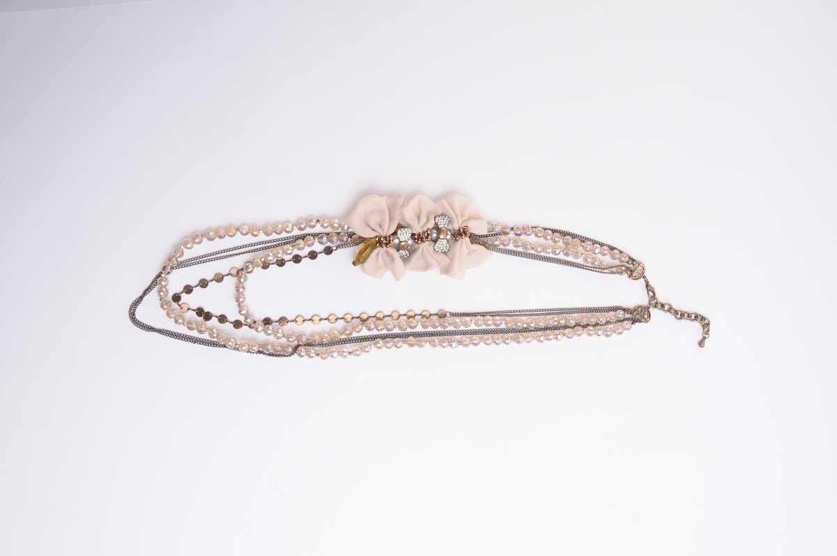 İnci Detaylı Uzun Zincir Kolye Pudra