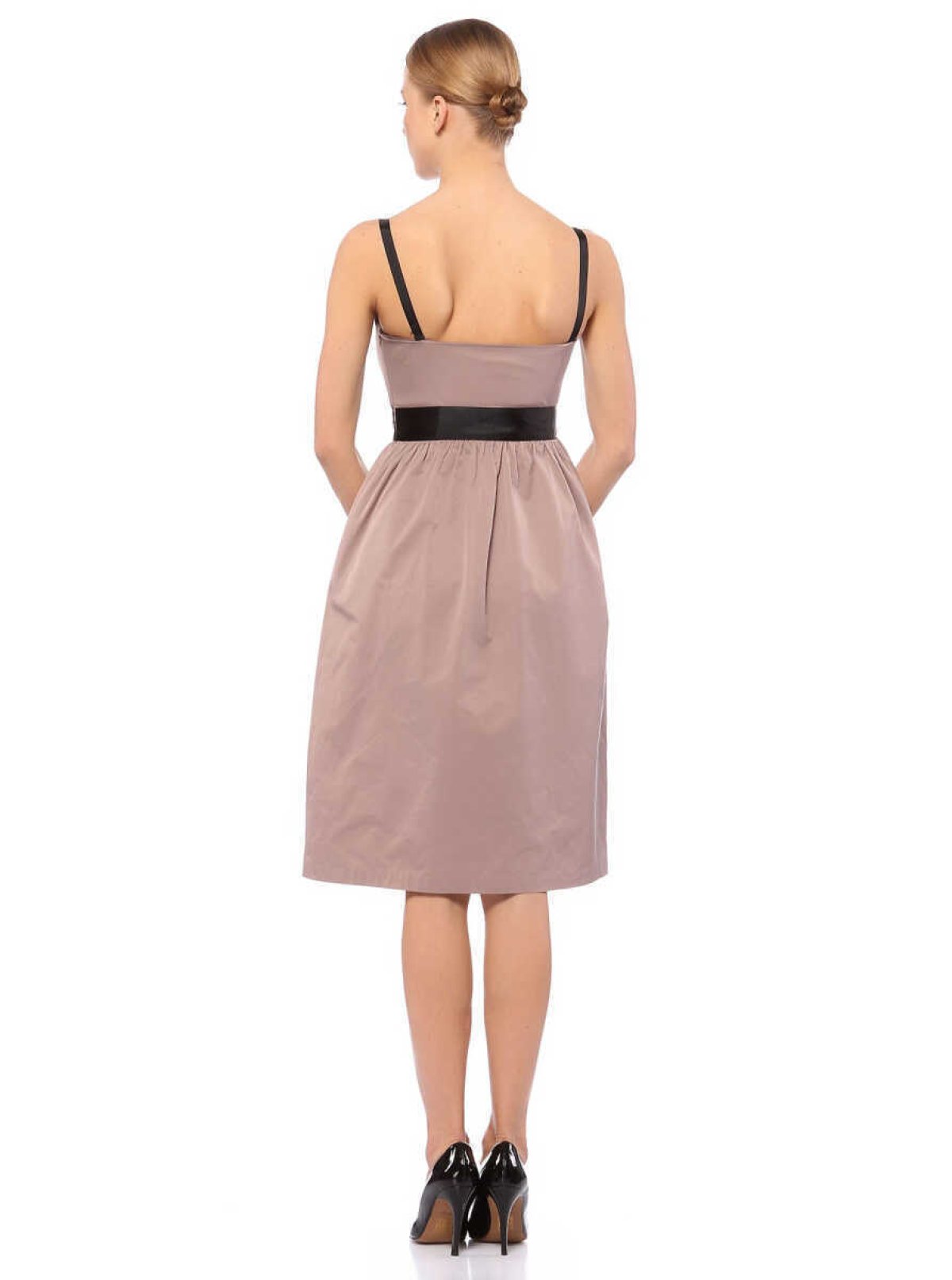 Arka Eteği Pili Detaylı Önden Vatkalı Midi Boy Elbise Ekru