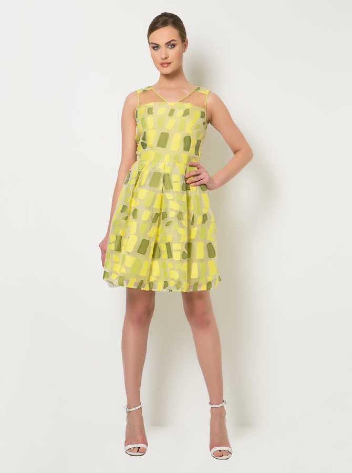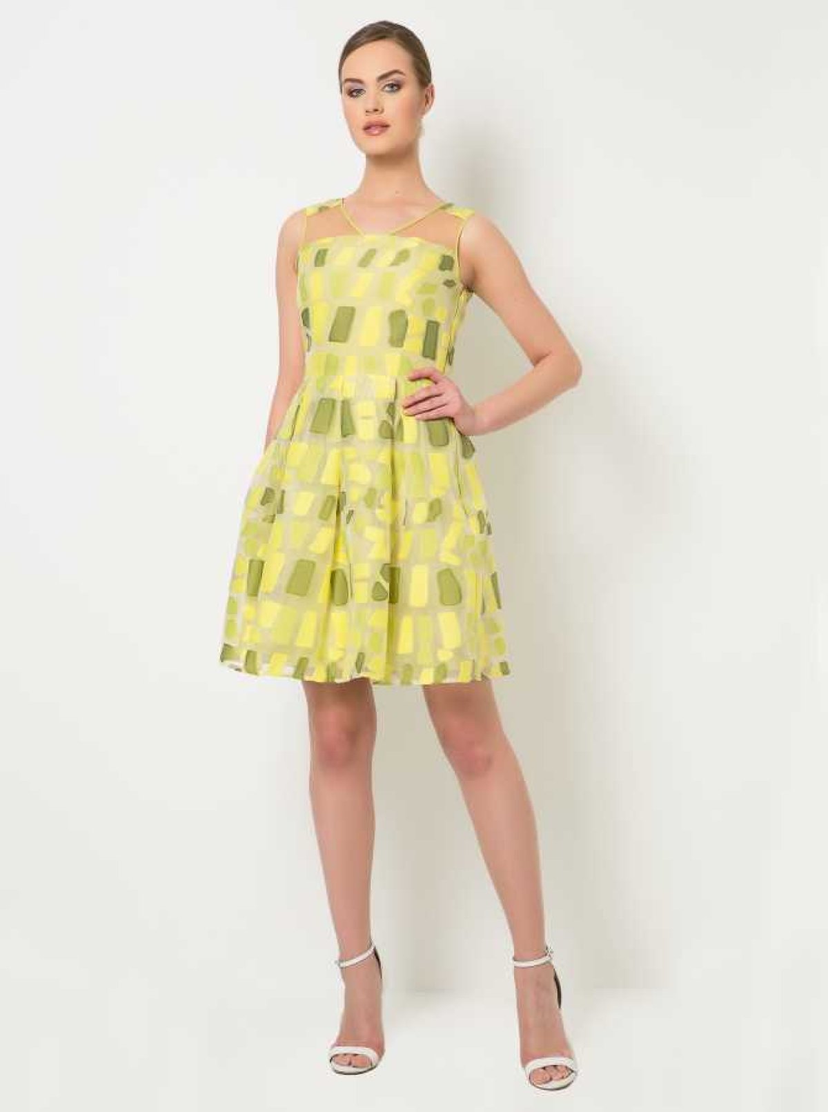 Üst Bedeni Organze Ve Fiyonklu Kolsuz Kısa Elbise Siyah