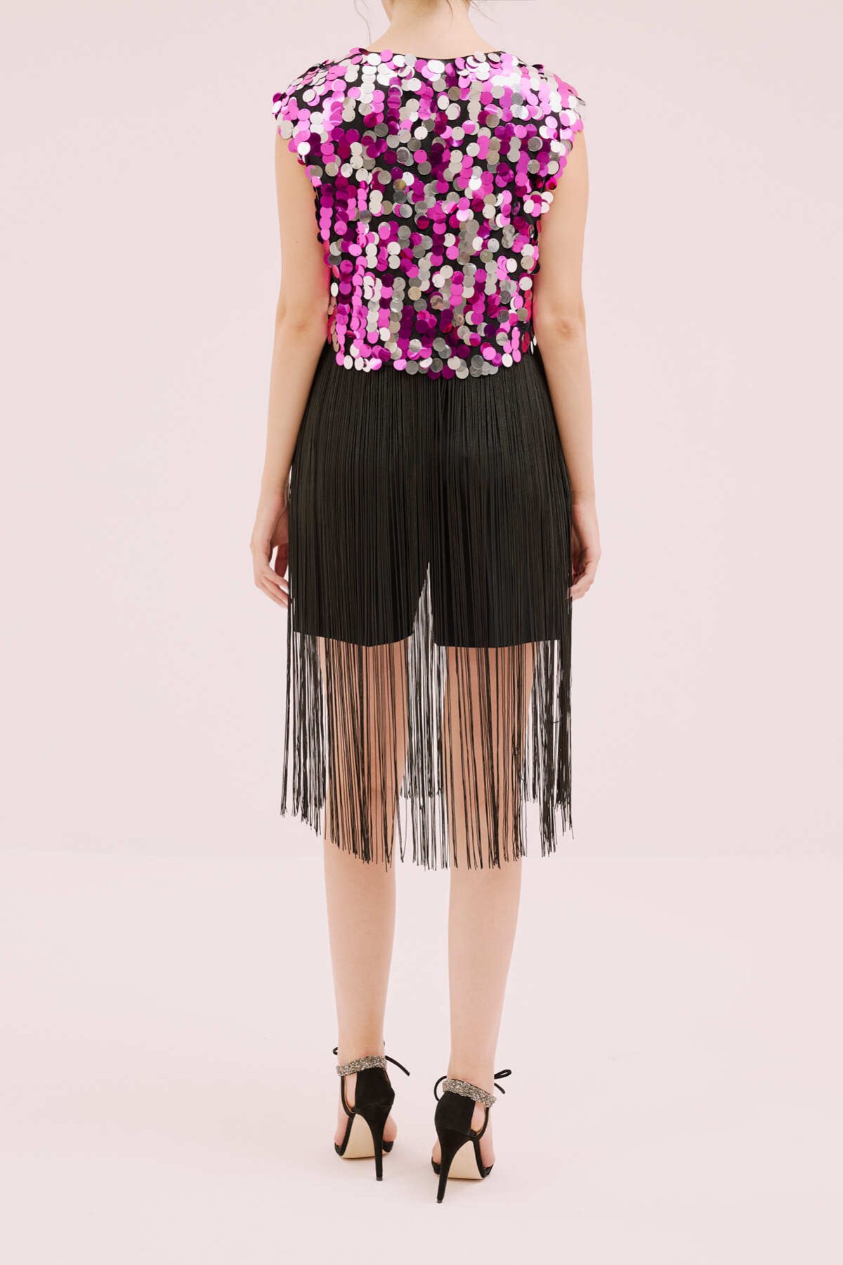 Tek Omuzu Pili Detaylı Kolsuz Bluzan Siyah