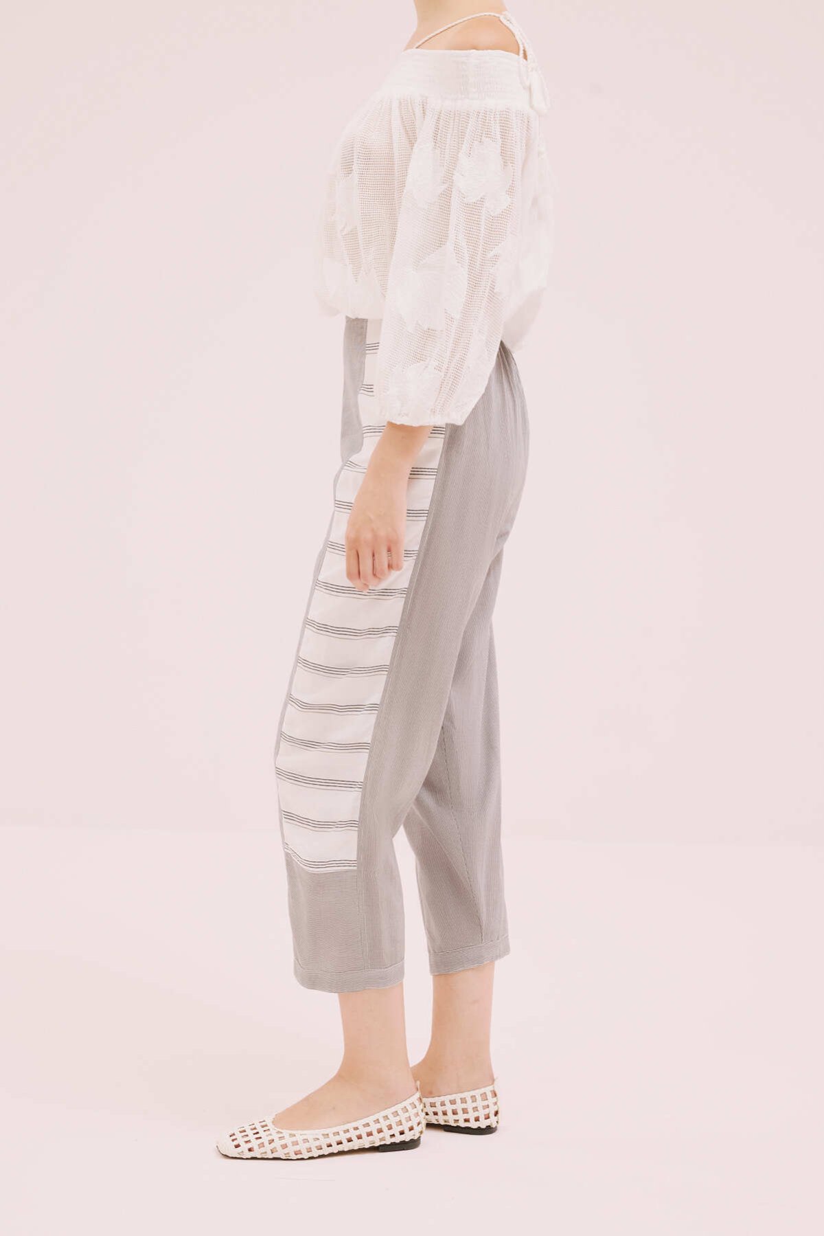 Nakış Detaylı Beli Lastikli Geniş Paça Pantolon Bordo